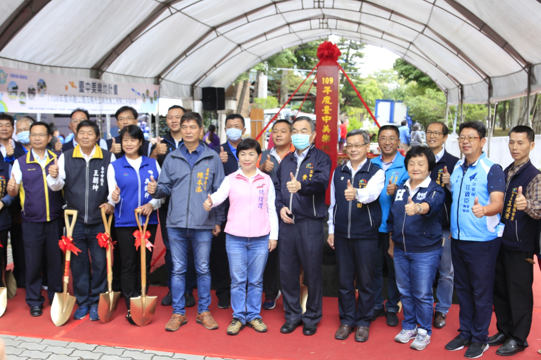 今日典禮除了黃副市長、建設局陳局長,市府客委會主委江俊龍、立法委員楊瓊瓔、市議員王朝坤、陳清龍、張瀞分、陳本添、冉齡軒及多位地方里長均到場共襄盛舉;立委江啟臣、市議員周永鴻、徐瑄灃也派代表到場見證。
