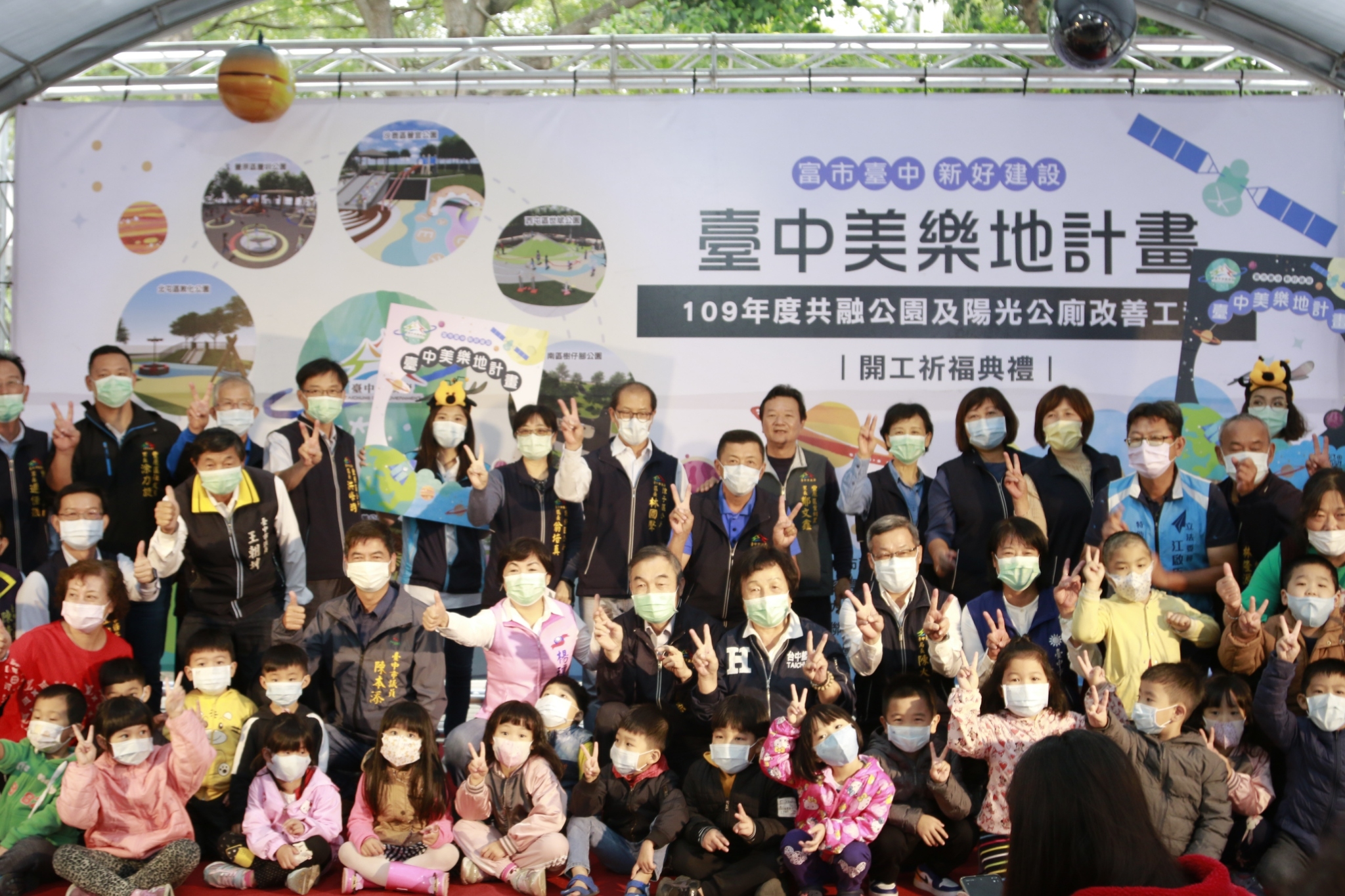 台中市政府建設局積極推動「台中美樂地(Taichung Melody)」計畫,繼去年完成49座,今年再推動53座老舊公園改善,今(23)日豐原、潭子、東勢等山城地區共10處共融公園及陽光公廁改善工程啟動,預計年底全數完工,不僅將導入友善共融理念,更依地方特色打造不同主題,讓公園安全又好玩!