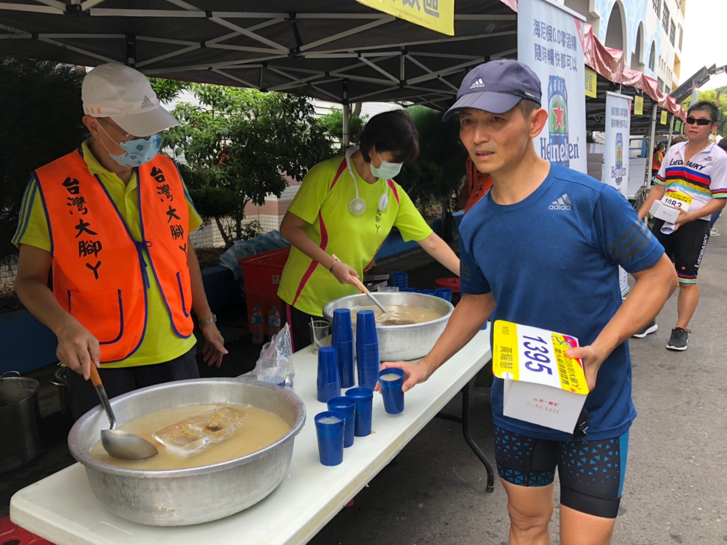 環保局代理局長陳宏益表示,近年運動風潮盛行,國內常舉辦區域型賽事,並融入環保概念,以今年大腳ㄚ全國馬拉松接力賽來看,賽事當日使用環保重複杯,節省約5,000個塑膠寶特瓶,一個寶特瓶以22公分計算,相當於減少約2.1座台北101大樓(1座高度約508公尺),整場賽事總減少約170.5公斤垃圾量、約351.2公斤排碳量。