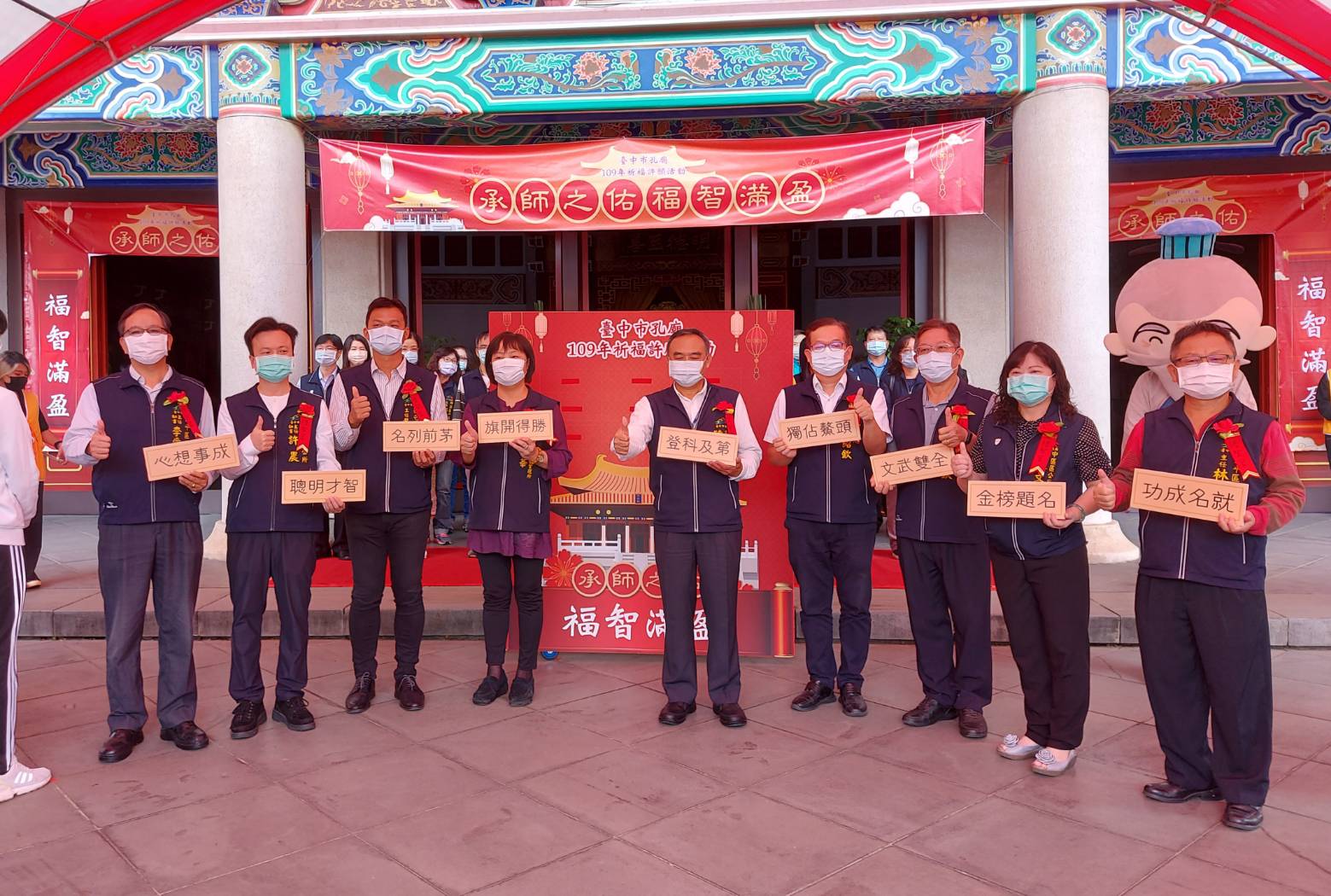 民政局表示,每年孔廟均舉行2場祈福許願活動,今年第二場原定6月,受新冠肺炎疫情影響延至10月,今日現場「智取六藝」闖關活動,透過遊戲設計,讓民眾體驗儒家六藝「禮、樂、射、御、書、數」,完成闖關者可兌換經孔子神位加持的限定好禮,現場還有Q版孔子公仔與民眾互動拍照;包括孔廟所長李書華、西屯區公所副區長洪靖欽、錦祥里長林美玉、樂英里長劉玉琦及賴旺里長黃育嘉等人均共襄盛舉,市議員羅廷瑋派代表致意。(10/24*11)*民政局
