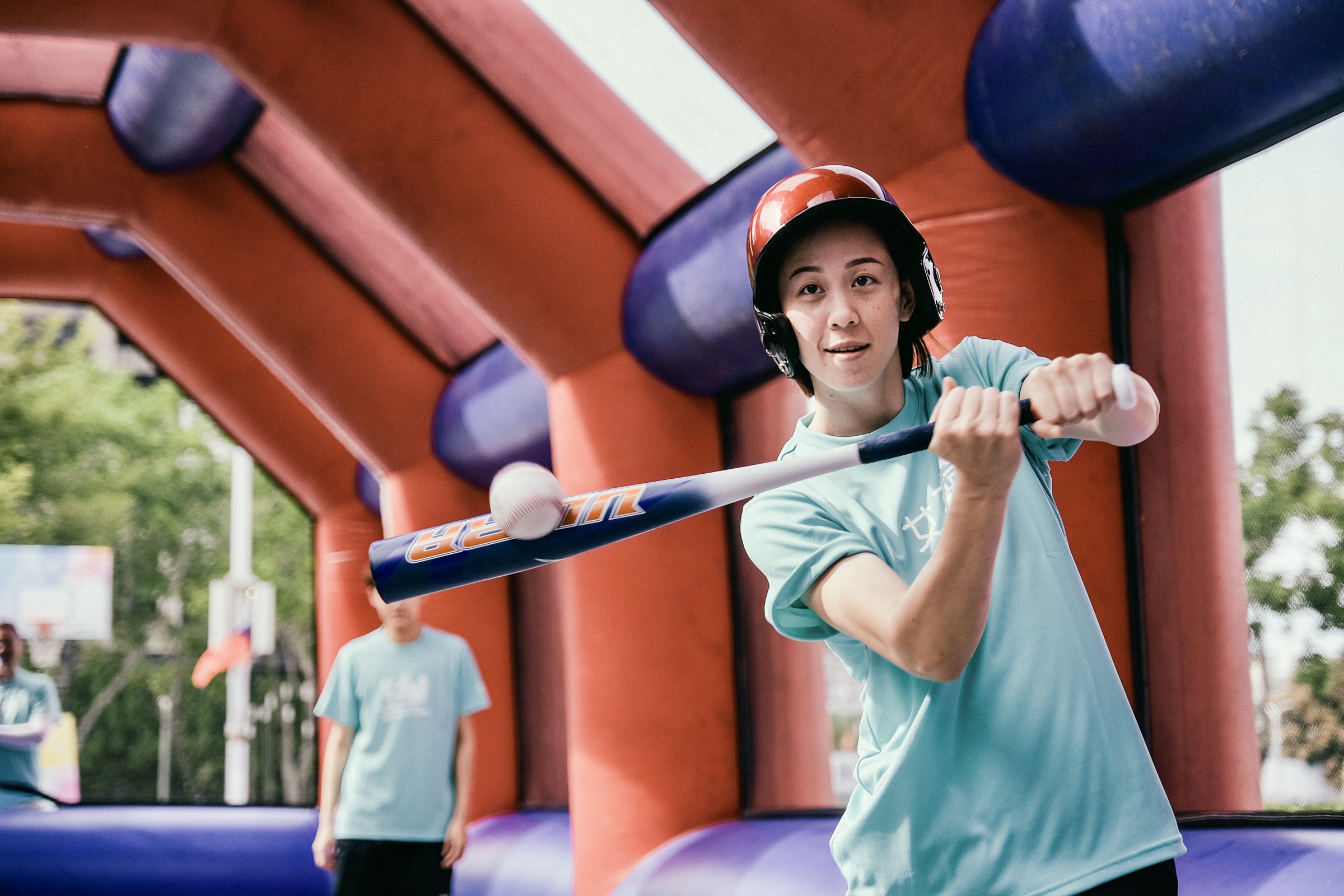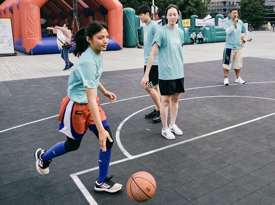 現場由國泰女子籃球隊進行籃球體驗營示範教學;另外還有跑壘與強打王等大型充氣遊戲座,以及年輕人喜愛的3分球投籃等闖關遊戲,不僅如此,還首度在台中市戶外引進5人制棒球運動,這項運動不僅已納入青奧競賽項目,街頭風快節奏,也是特色之一。