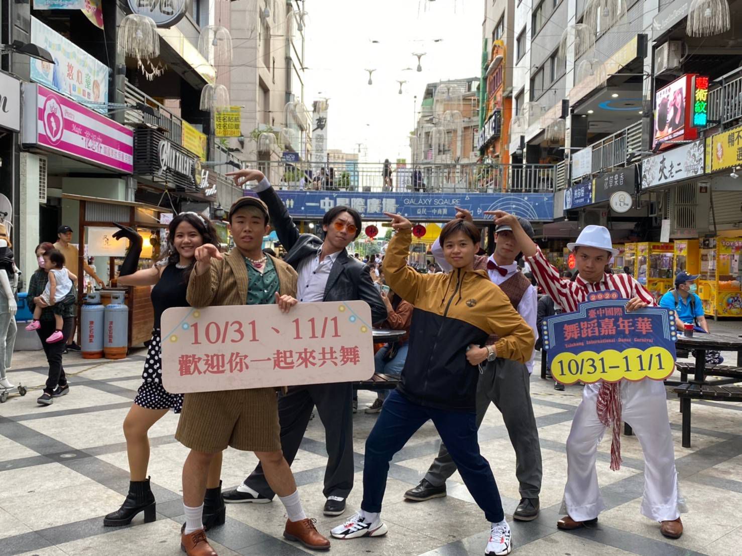 「2020台中國際舞蹈嘉年華」將於10月31日及11月1日盛大展開,前哨集客宣傳挑動起嘉年華的歡樂節奏。昨(24)日下午於台中老字號的「白雪大舞廳」舉行復古舞會,現場專業DJ精選各個年代的經典舞曲,帶領大家重返回憶中的第一支舞;同一時段在中城區的第二市場、第一廣場、站前秀泰生活館、一中益民商圈,由深耕台中十年的在地舞團「典躍舞團」進行快閃表演,現身街頭廣場,現場民眾一起搖擺共舞,感受舞蹈的魅力與活力!