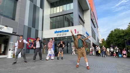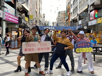同一時段則由成軍10年、台中知名在地舞團「典躍舞團」在中城區四個人潮熱點:第二市場、第一廣場、站前秀泰生活館及一中益民商圈,帶來吸睛度破表的熱力演出。活潑亮眼的服裝加上舞蹈肢體互動,在人來人往的廣場與商圈,行人們各個停下腳步觀看。精采絕倫的表演獲得一片掌聲,也讓大家更加期待主活動登場。