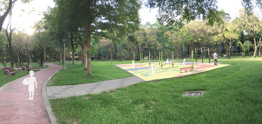 今日聯合開工典禮於南區健康公園舉行,由於健康公園鄰近物種豐富的中興大學,形成適合鳥類棲息的市區生活場域,因此主題設計為「樹梢漫步」,連接多個園道、公園綠地,將樹梢棲地元素融入新增的攀爬架與地景設施,營造鳥類在樹梢跳躍、漫步的遊戲體驗。