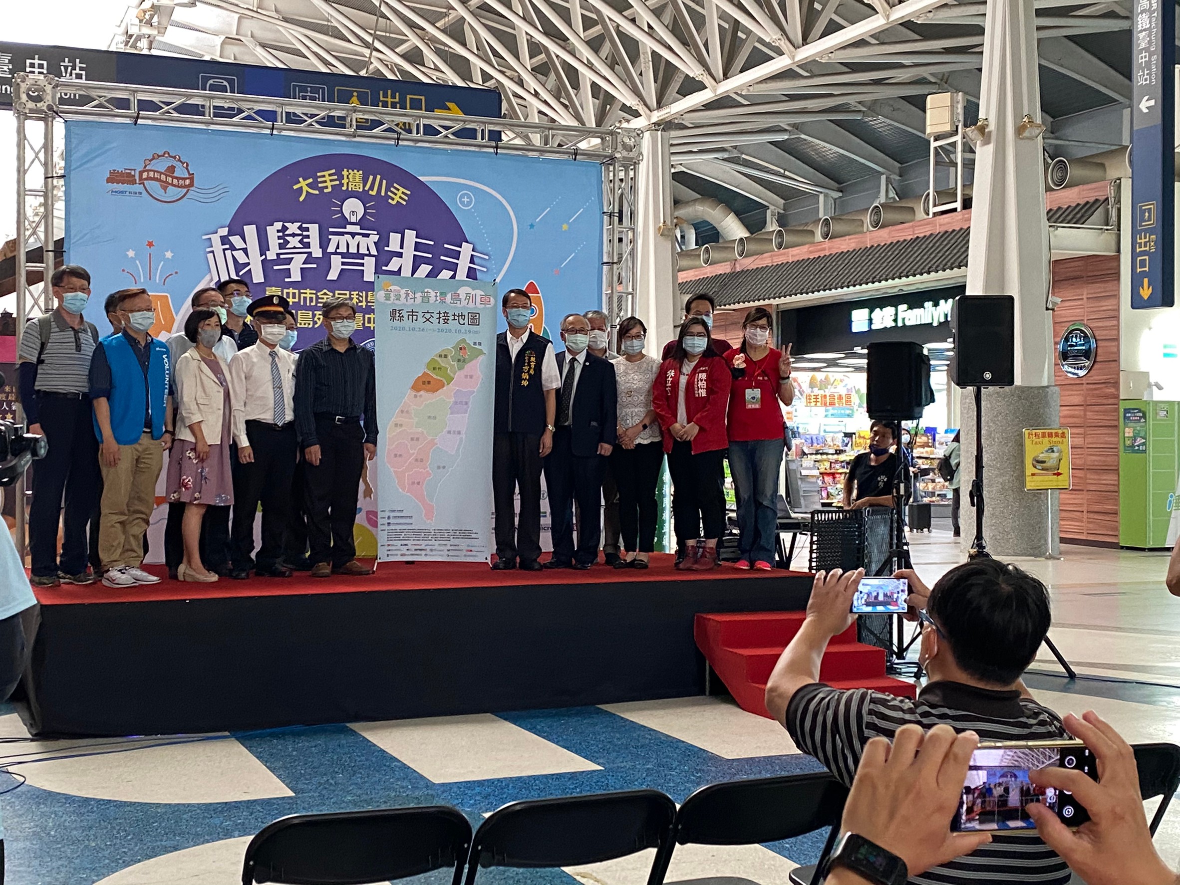 「2020台灣科普環島列車」今(27)日於台鐵新烏日站啟航,台中市280名國小學生坐上列車,在往彰化二水站的路途中進行科學實驗,另有800名國小學生留在新烏日站參加站內科學闖關遊戲。台中市政府教育局副局長方炳坤表示,盼藉由車站內、列車上的科學體驗活動,激發學生探索科學興趣。