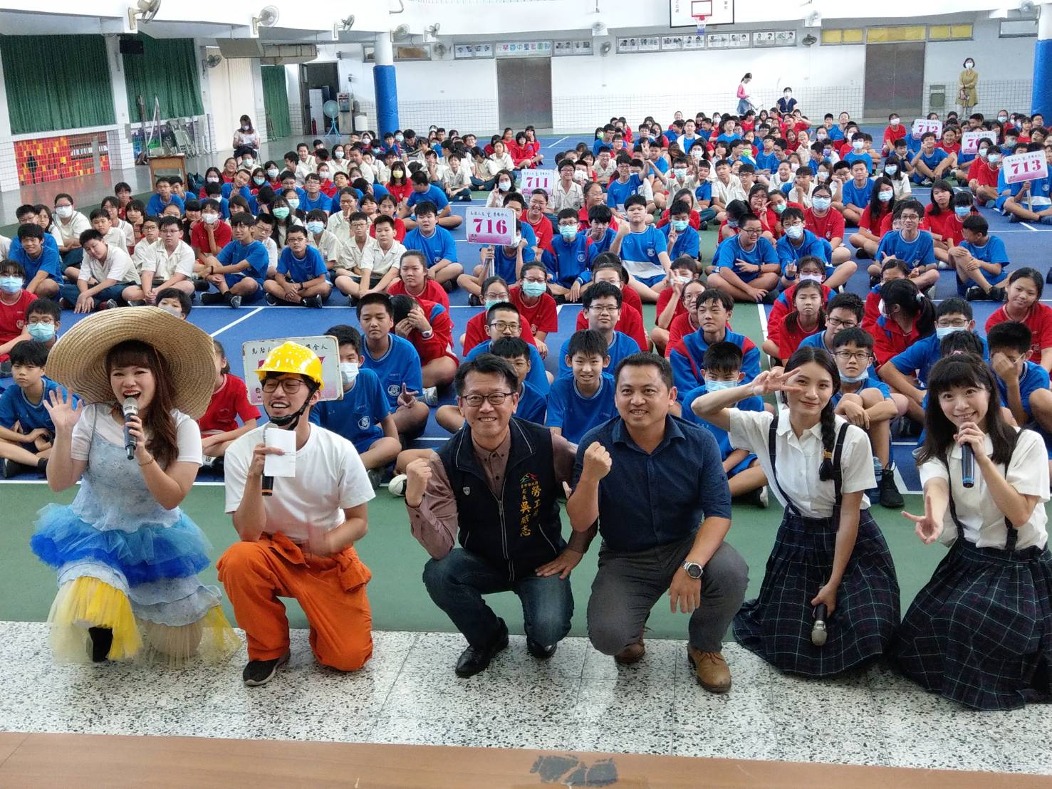 為建立青年學子正確勞動概念,台中市政府勞工局自104年推動勞動教育扎根計畫,今年特別邀請如果劇團,昨(28)日在清泉國中與光榮國中舉辦《職場直播間》劇團表演,透過生動有趣的戲劇表演,幫助學生理解勞動權益的重要性。勞工局長吳威志到場與師生同樂,演出過程笑聲四起,有獎徵答更激起學生踴躍舉手搶答,氣氛歡樂。