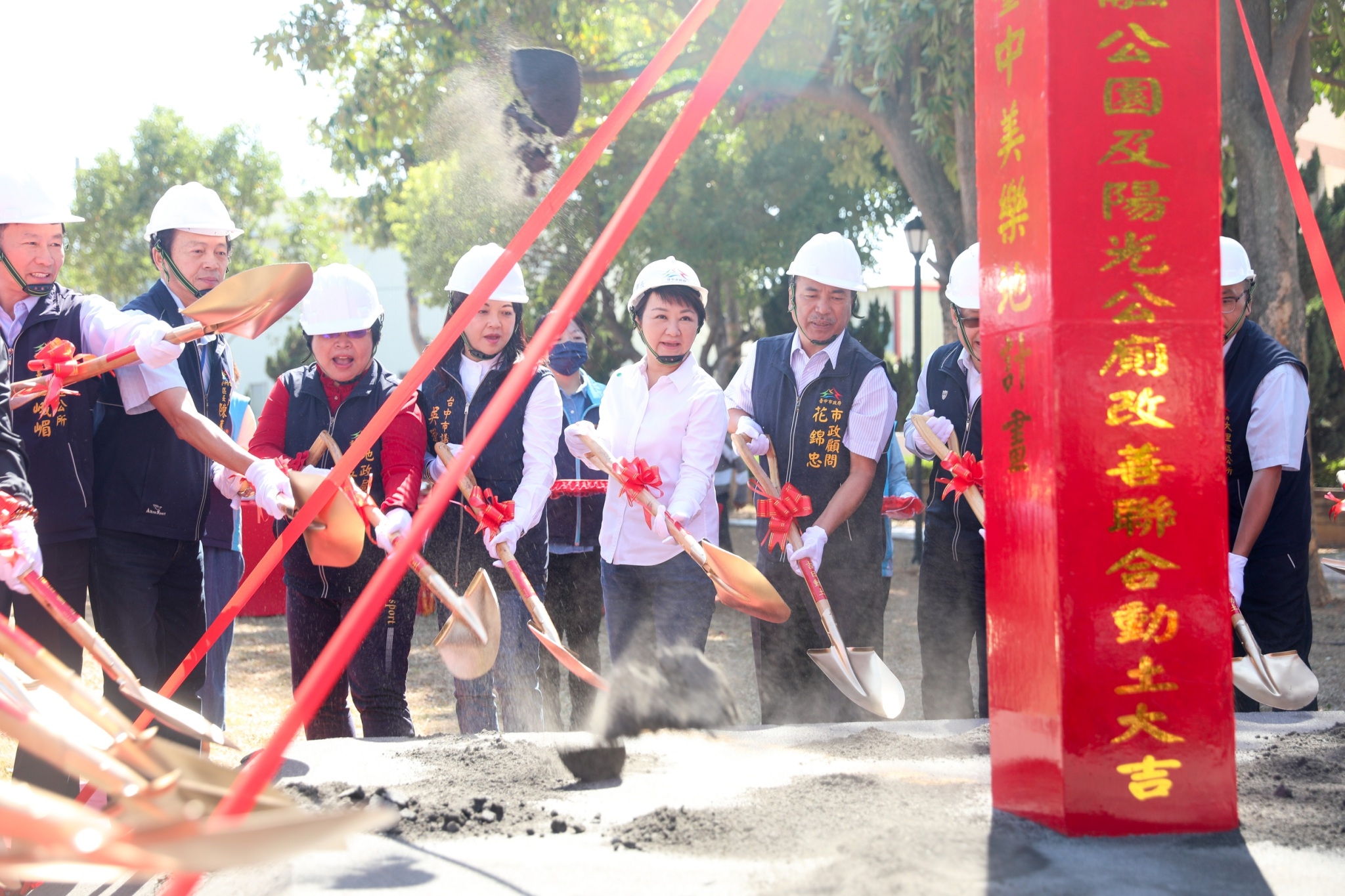 今日聯合開工典禮,包括盧市長、建設局長陳大田、地政局長吳存金、財政局長羅仙法、市議員吳瓊華、林孟令、前立委顏寬恒、龍井區長戴燕如、大肚區長白峨嵋、烏日區長陳嘉榮、霧峰區長陳宗祈及多位地方里長均出席,立委陳柏惟、市議會副議長顏莉敏、市議員陳世凱、林汝洲、張家銨等人也派代表到場祈福。(10/30*7)*建設局