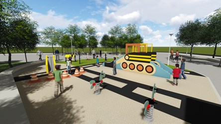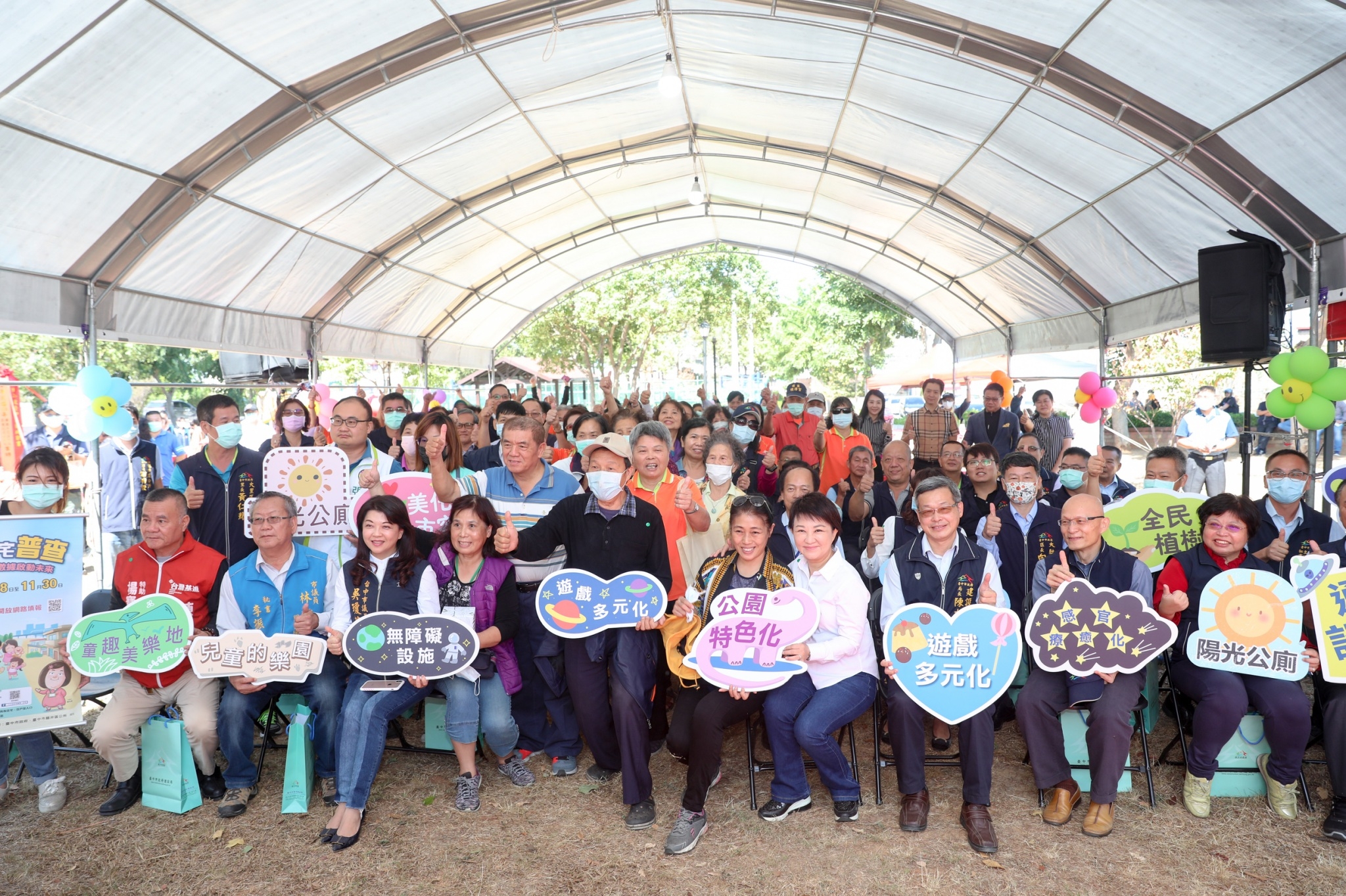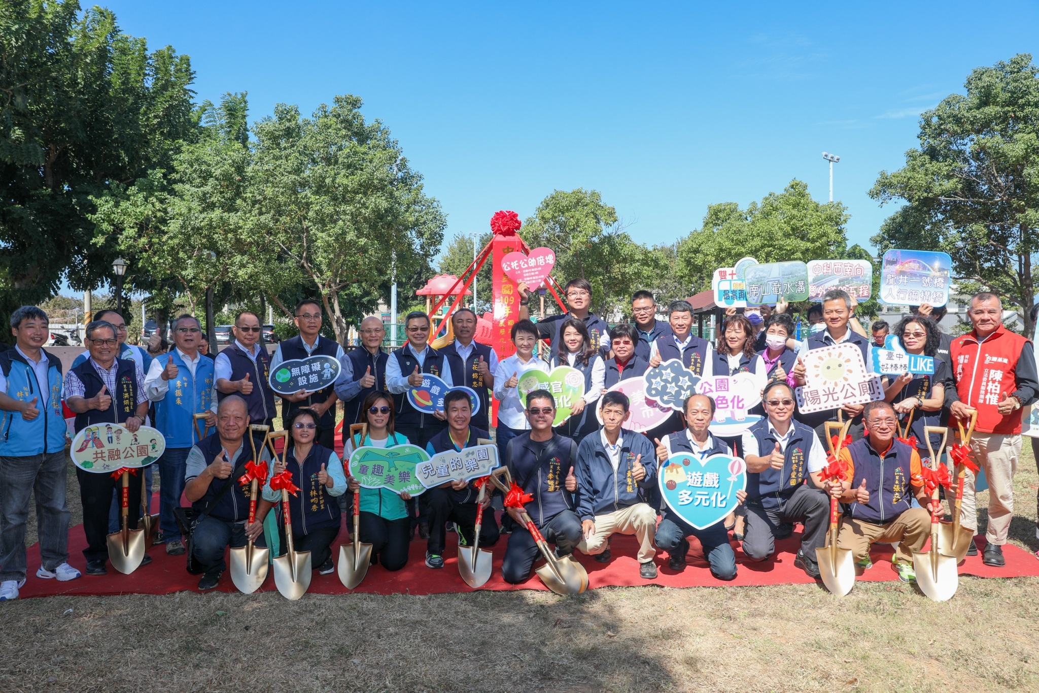 市長盧秀燕力推「台中美樂地計畫」,打造漂亮友善的公園與公廁環境,台中市政府建設局繼去年完成49座公園改善,今年將再改善53座公園;其中龍井、大肚、烏日、太平、大里、霧峰區共11座友善共融公園及4處陽光公廁改善工程今(30)日聯合開工,建設局投入約1,466萬元經費,將打造西瓜、棒球、紙船、車輛機具、瓢蟲、蜜蜂等童趣主題遊戲場,改善公廁設施,讓台中的公園更好玩。