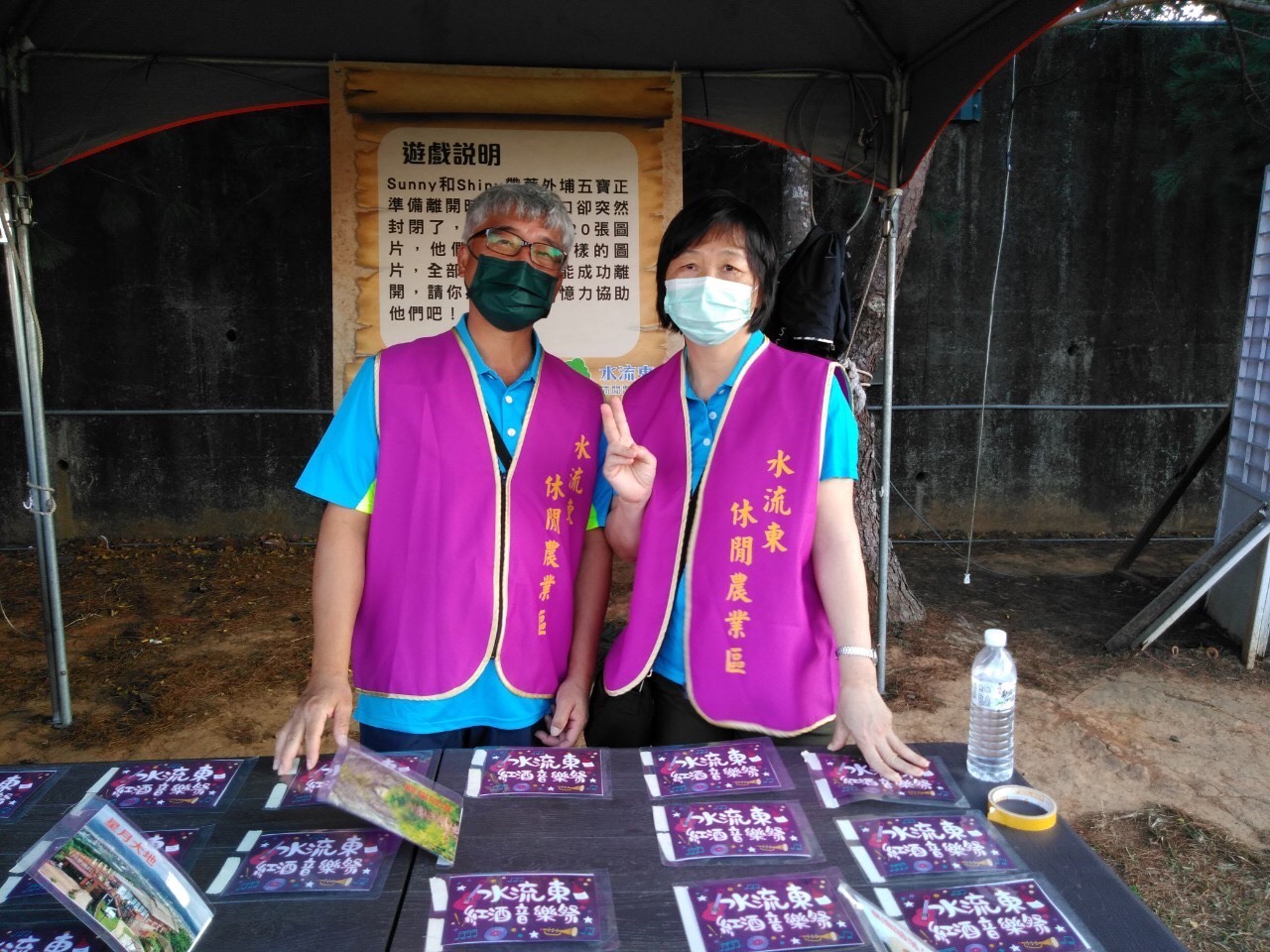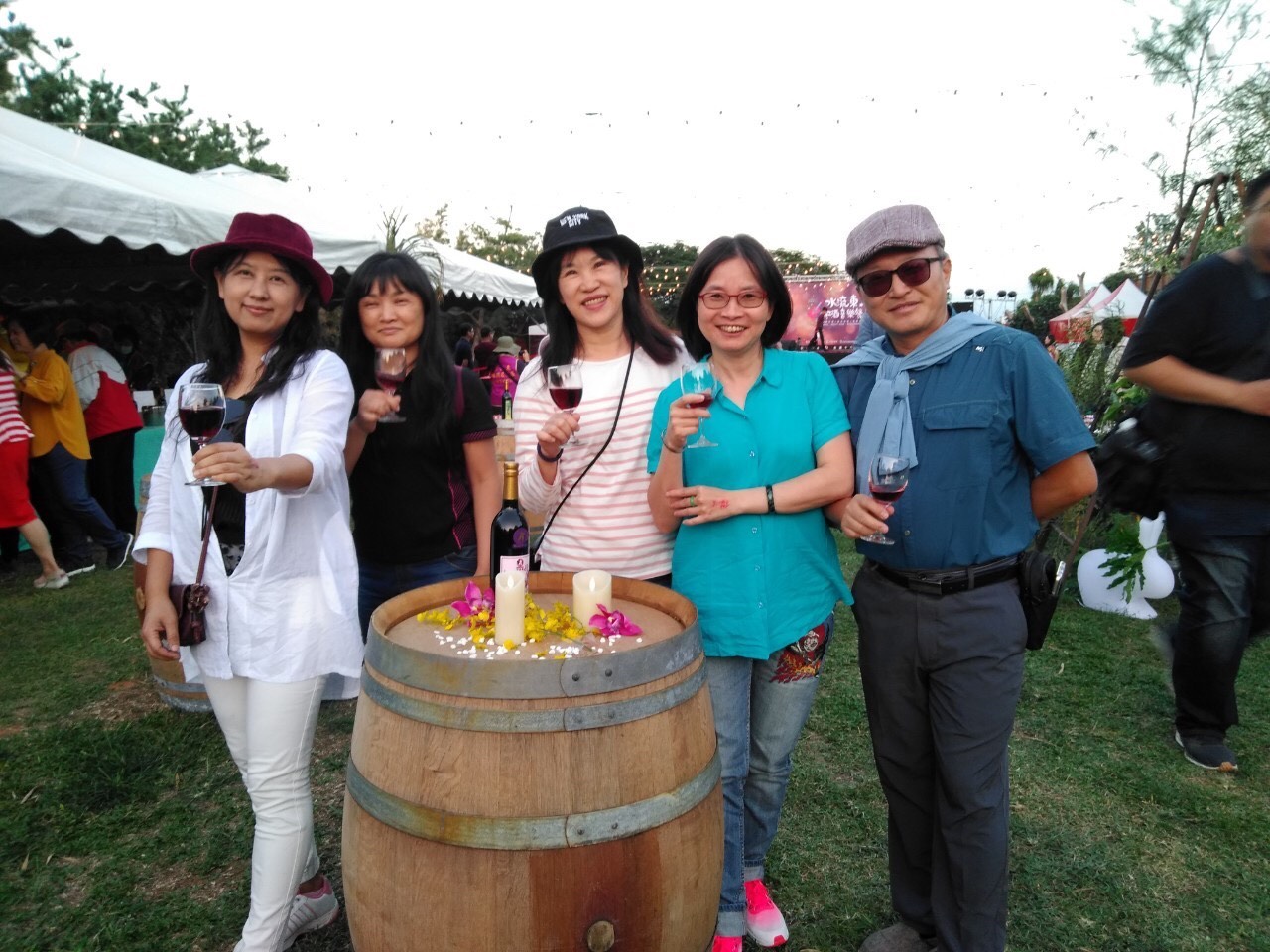 今日「水流東紅酒音樂季」邀請行政院農業委員會水土保持局台中分局課長翁志成、行政院農業委員會農業試驗所研究員王如玉、臺中市議員施志昌、臺中市政府農業局專門委員陳柏宏、外埔區區長葉聯慶、外埔區農會總幹事李錦東、水流東休閒農業發展協會理事長彭莉琴、國立中興大學教授吳振發等貴賓一起享受這微醺的紅酒音樂季,市議員李榮鴻也派代表至現場共襄盛舉。(10/31*14)*農業局