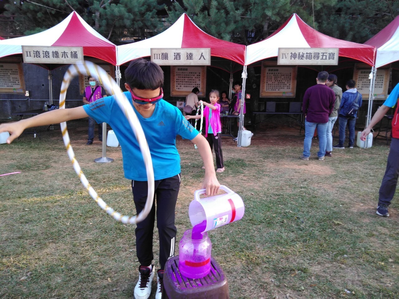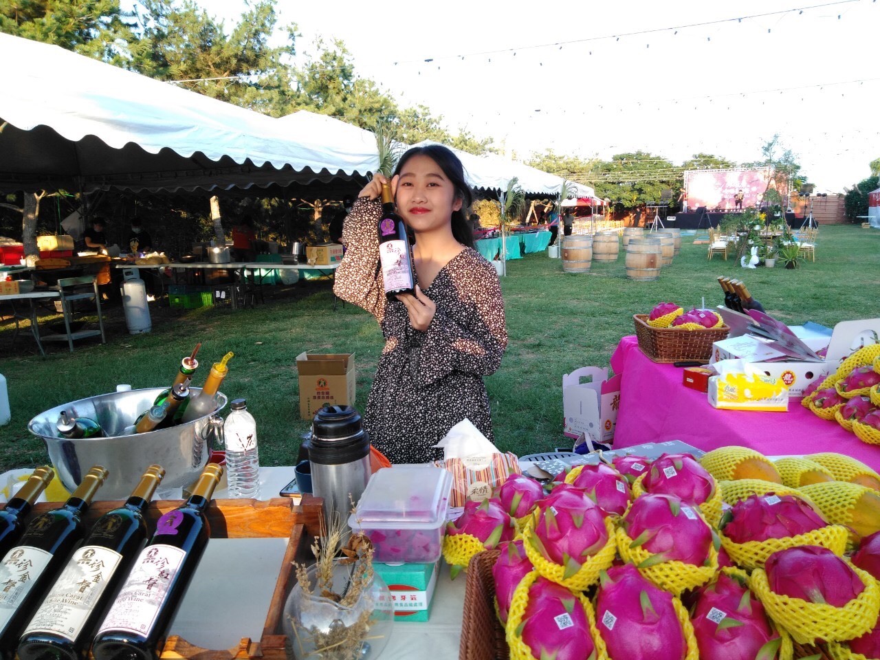 今日活動有美食、美酒與音樂,現場有外埔各家知名酒莊跟大家展售試飲高品質的葡萄酒,並帶大家認識釀造集窖藏的過程,喝出每支紅酒在橡木桶裡的不同風味。現場也有為大小朋友準備的闖關活動與萬聖節變裝秀,讓大家在變裝過程盡情揮灑創意、搞怪走秀。