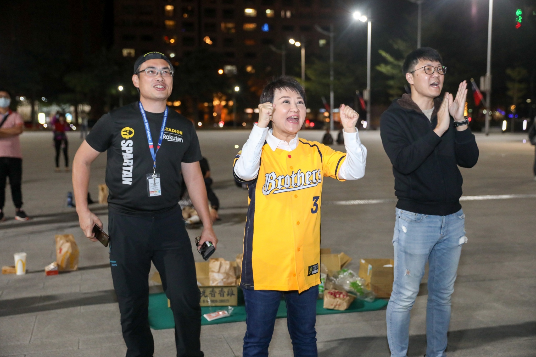盧市長說,今年球場因為防疫只開放七成座位,全數售出,許多球迷無法入場,因此市府特別透過府前廣場大螢幕進行戶外轉播,她也選擇在此觀賽,把球場座位留給球迷朋友。