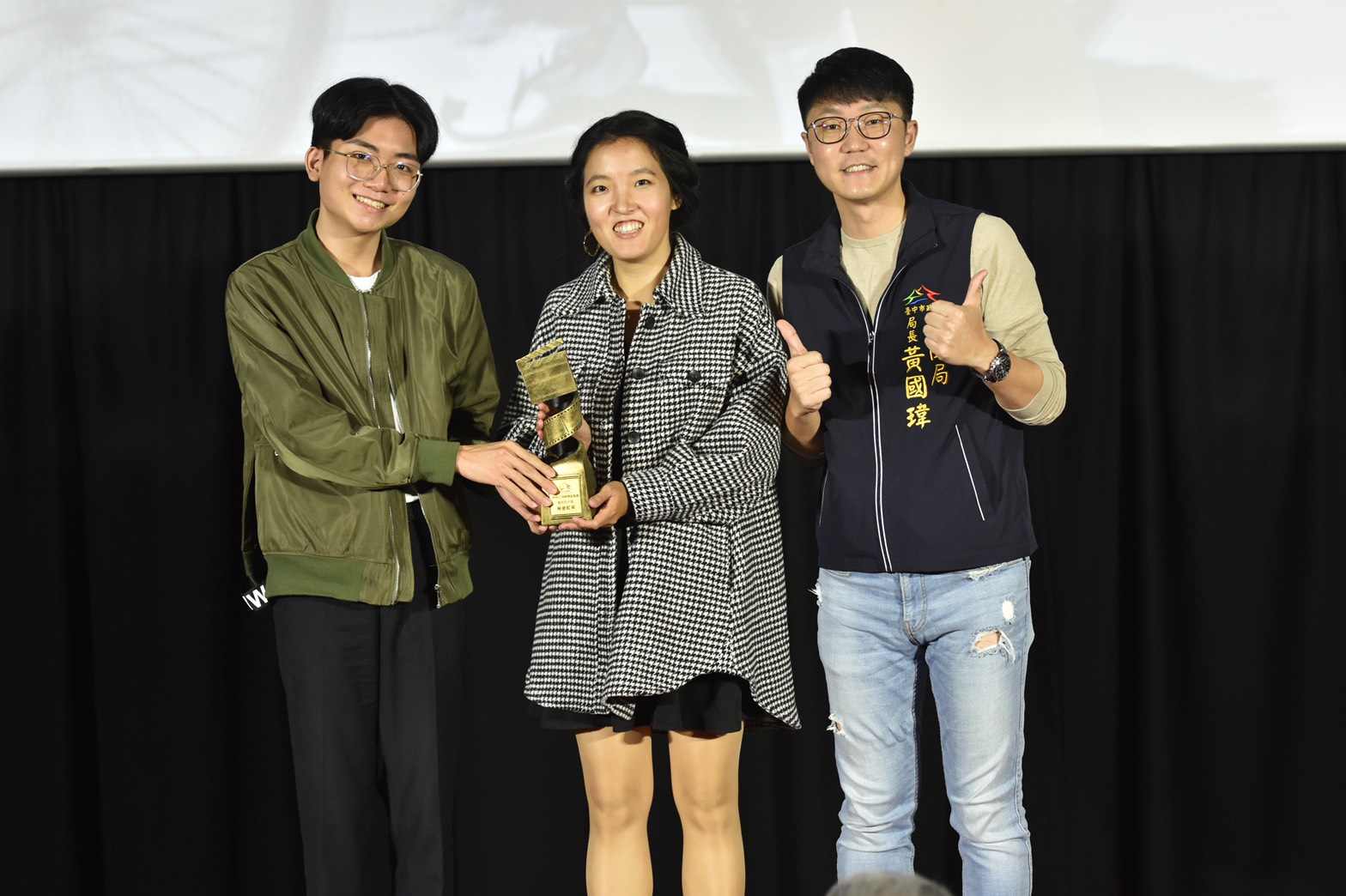 台中市政府新聞局連續6年舉辦「當導演 你行的」素人導演培訓課程,作品於有線電視公用頻道播送,並開辦「金導獎」肯定優秀作品。今年「金導獎」得獎名單昨(31)日揭曉,並在凱擘影城舉行頒獎典禮,由新聞局長黃國瑋、授課講師資深媒體人張建人、吳欣玫頒獎。黃局長肯定學員努力,「高手在民間」,鼓勵學員持續創作,用影像記錄不同視野下的台中故事。