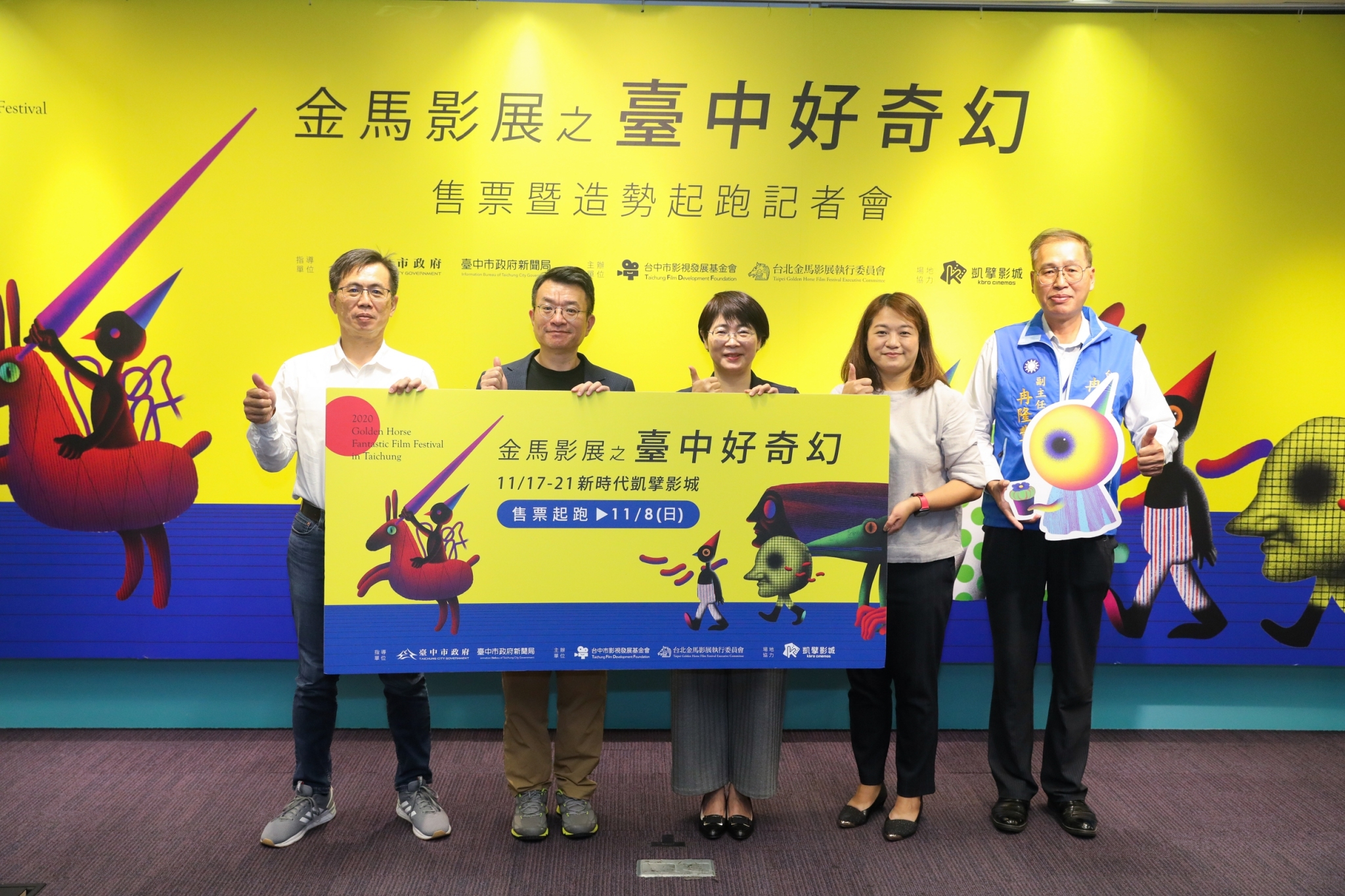 台中市政府新聞局今(3)日舉行「2020金馬影展之台中好奇幻」售票暨造勢起跑記者會,副局長陳佳君表示,台中除擴充硬體設備,協助拍片團隊,也舉辦多場影展,促進影視產業發展。今年新聞局補助電影共入圍25項金馬獎,大放異彩,接著11月6日舉辦「2020台中國際女性影展」、11月8日「金馬影展之台中好奇幻」開始售票、11月27日更有「台中國際動畫影展」,一連串的活動,要讓影迷大飽眼福,感謝台北金馬影展執行委員會與台中市影視發展基金會合辦此次「金馬影展之台中好奇幻」,預祝售票成功。