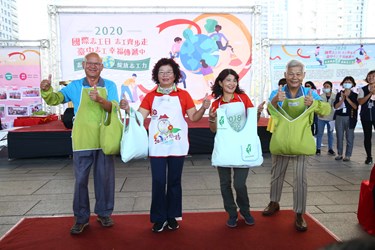 台中市政府社會局響應12月5日國際志工日,邀請志工團體改造2018花博志工背心,包括身上的圍裙、束口袋,手套罩、環保購物袋等,各項作品創意無限,志工們雖沒有華麗打扮,但以樸實自然呼應環保潮流。後續會將這些成品媒合給有需要的社福單位,用不同形式展現志工精神。