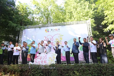 行政院農業委員會今日舉行展前記者會,副市長令狐榮達、農委會副主委陳駿季、農委會種苗改良繁殖場長張定霖、林務局東勢林管處長蕭崇仁、水土保持局台中分局長陳重光、新社區農會總幹事羅文正等人一同進行啟動儀式,宣告今年新社花海暨台中國際花毯節開跑。