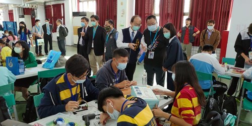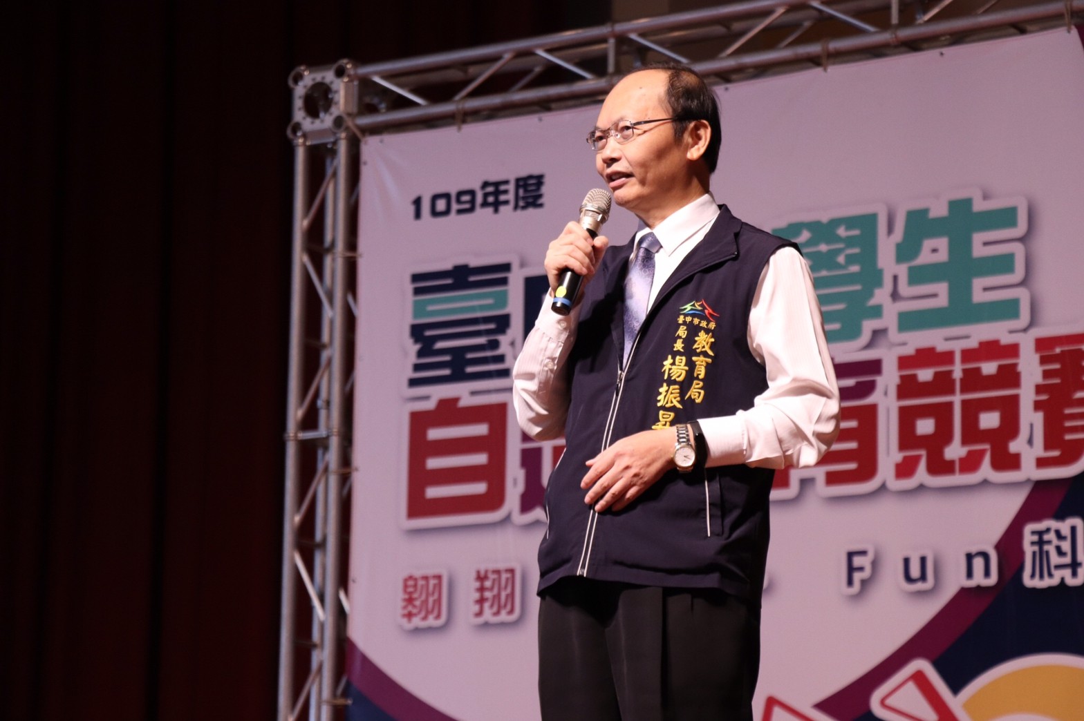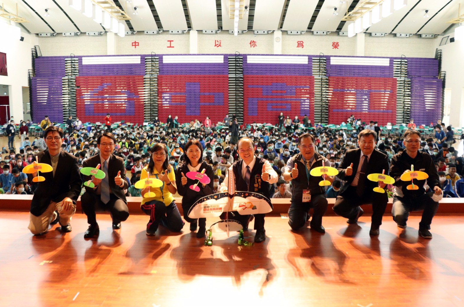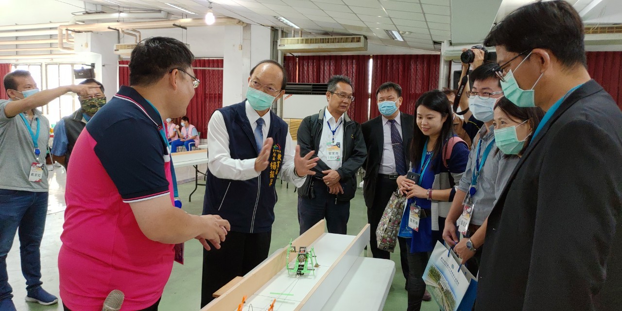 台中市政府教育局今(12)日在台中高工體育館舉辦「109年度台中市學生自造教育競賽」,分為高中職組、國中組、國小組,運用仿生、動力、電動等科技技術展現各種創意,清水高中、大甲國中及富春國小等學校均參與,共200支隊伍同場競技,教育局長楊振昇到場鼓勵學生,期望透過比賽培養獨立思考、動手實作、創新創意與解決問題能力,面對未來快速變遷的社會。