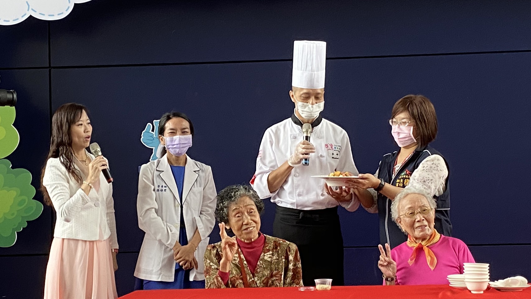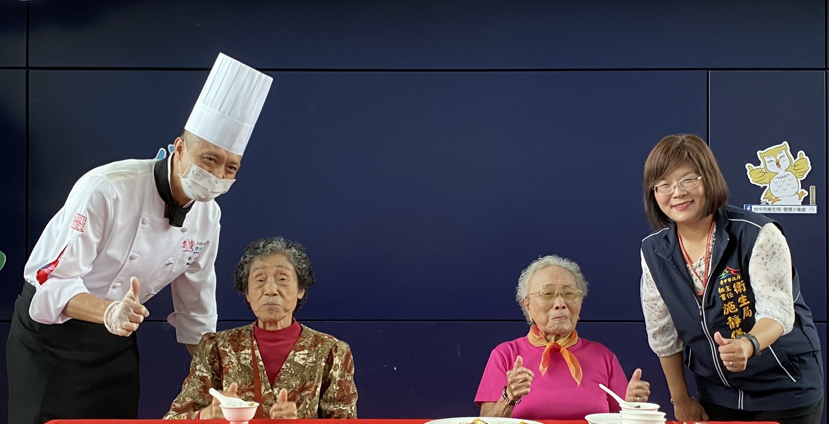 台中市政府致力提升長者健康並延緩失能,今(13)日衛生局舉辦「銀髮好食力 樂活好記憶」成果發表活動,展現市府的銀髮長者守護計畫,包括高齡友善飲食的據點已遍布台中共105個、幫助超過200位長者規劃個別運動計畫、並招募7,000名志工深入鄰里照顧失智患者。今日活動也邀請知名主廚烹煮長輩軟食料理,讓高齡90歲的長輩們開心豎起大拇指讚賞。