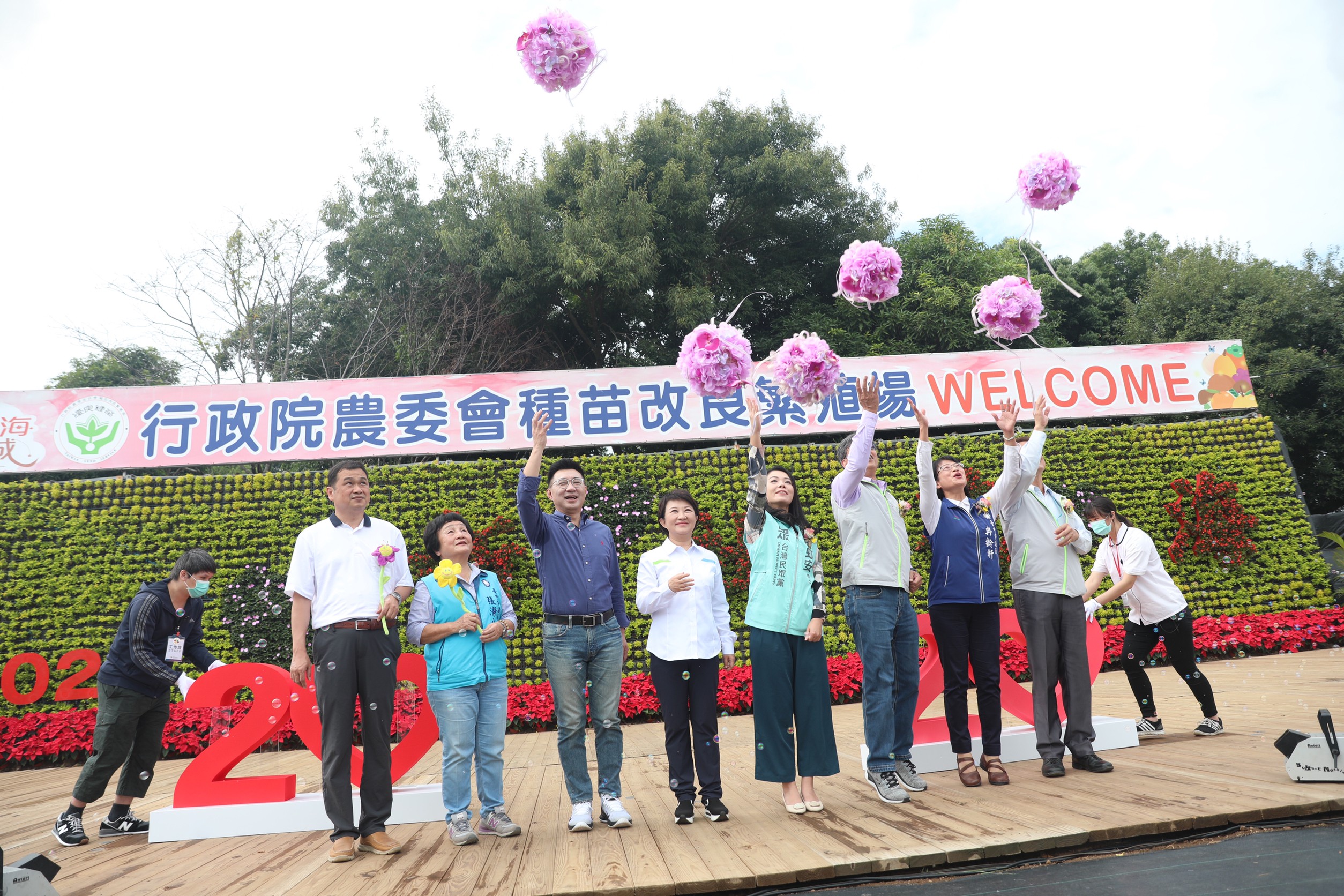 今日開幕式由盧市長、立法委員江啟臣、高虹安、行政院農委會副主委陳駿季、種苗改良繁殖場長張定霖一同將繡球拋向高空,宣布活動開跑,市議員冉齡軒、蔡成圭、張瀞分、農業局長蔡精強、觀旅局長林筱淇、建設局長陳大田、交通局長葉昭甫、衛生局長曾梓展、新社區長林淑惠、后里區長賴同一等人也共襄盛舉;市議員謝明源也派代表參與。(11/14*6)*農業局