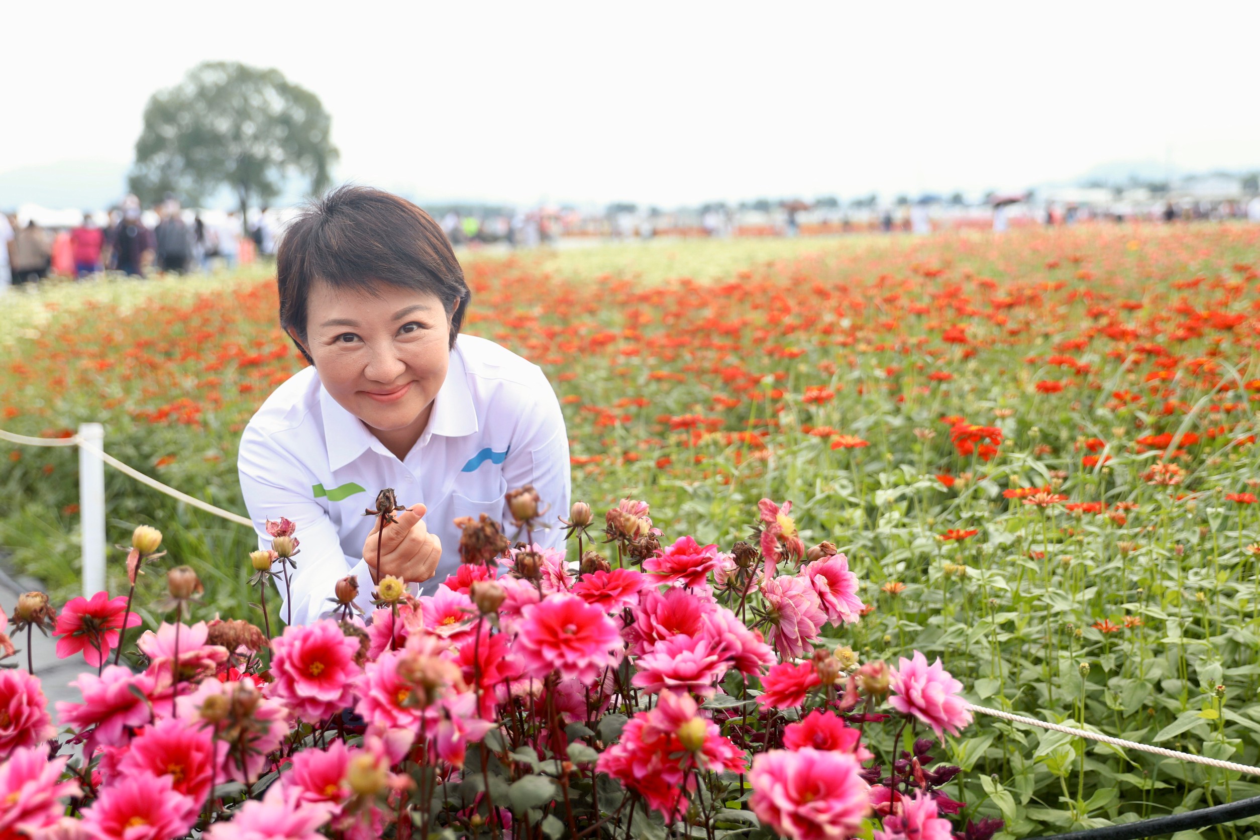 行政院農委會副主委陳駿季表示,今日特別感謝金門的理事及參議等人特別來參加活動,新社花海至今已15年,農委會種苗改良場功不可沒。立法委員江啟臣說明,種苗是國家最重要的軟實力,上週立法院經濟委員會視察,認定新社花海暨台中國際花毯節是資本支出最少,效益最高的活動。立法委員高虹安說,新社花海是老少咸宜的活動,值得將活動推廣出去。