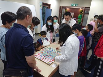 衛生局指出,為提高民眾對失智識能的學習動機,活動利用「together一起對抗失智人生」益智桌遊,將失智症的危險因子、十大警訊、用藥、失智照護資源等資訊,融入遊戲地圖,失智共照中心透過趣味桌遊,在社區中深入推廣失智症相關教育訓練及失智友善宣導活動,提升市民對失智症的認識、友善態度及社會參與。