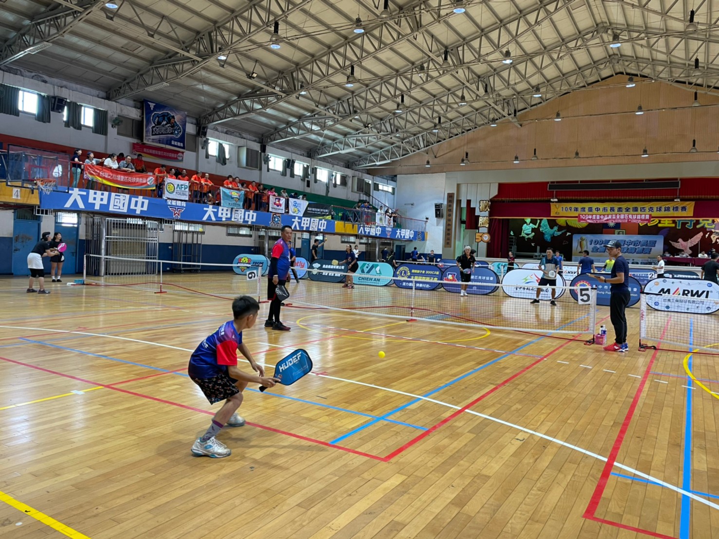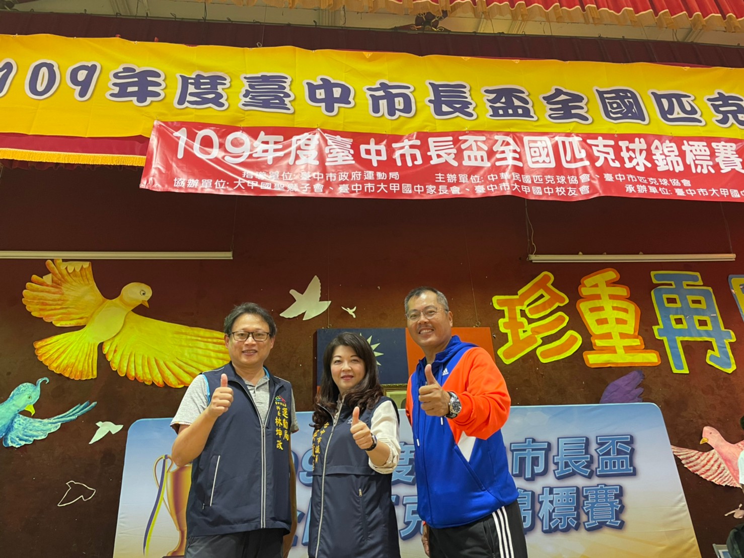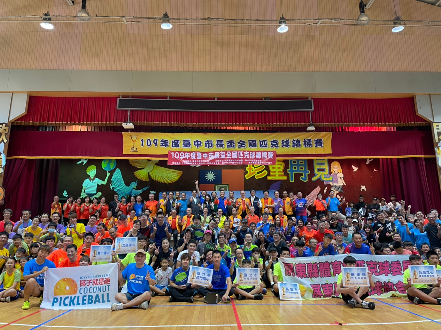 今日競賽,中華民國匹克球協會理事長賴建豪、大甲國聖獅子會長王再添、大甲國中校長賴文宗、市議員吳瓊華以及台北市、高雄市、南投縣、彰化縣、屏東縣等全國匹克球好手均共同參與盛會。(11/15*6)*運動局