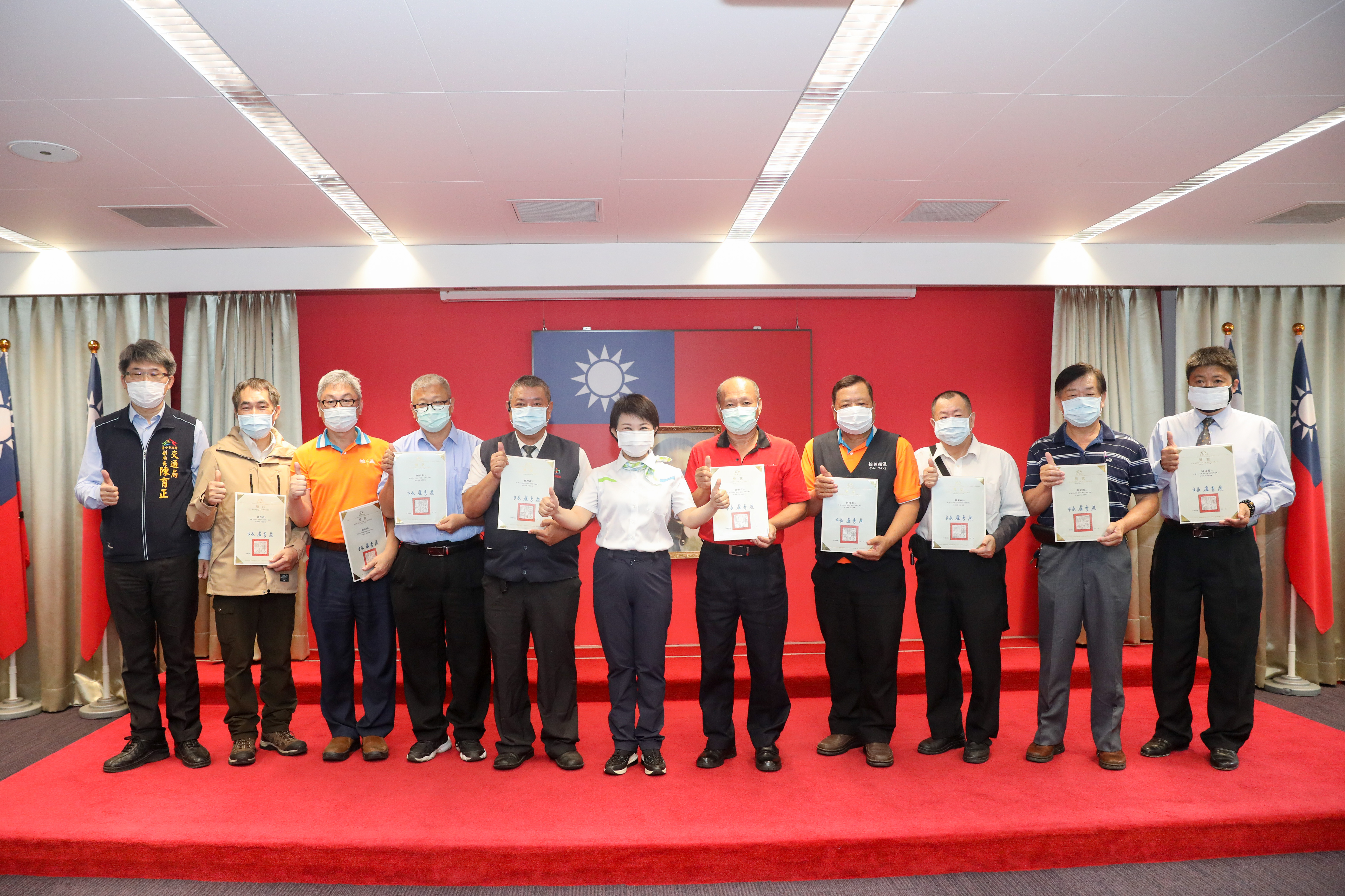 台中市政府今(17)日舉辦市政會議,市長盧秀燕公開表揚,頒發獎狀及獎勵金給16名優良駕駛,期望他們作為同業表率,持續提供優質服務。交通局副局長陳育正表示,這次包括陳世志、房泰庭、黃豐盛、郭木龍、陳明樹、陳景煬、陳良友、游政霖、蔡坤龍、劉昌水、邱文龍、林牧蕓、郭秉融、張文洲、黃馨霖、游芳民等16位計程車優良駕駛人。