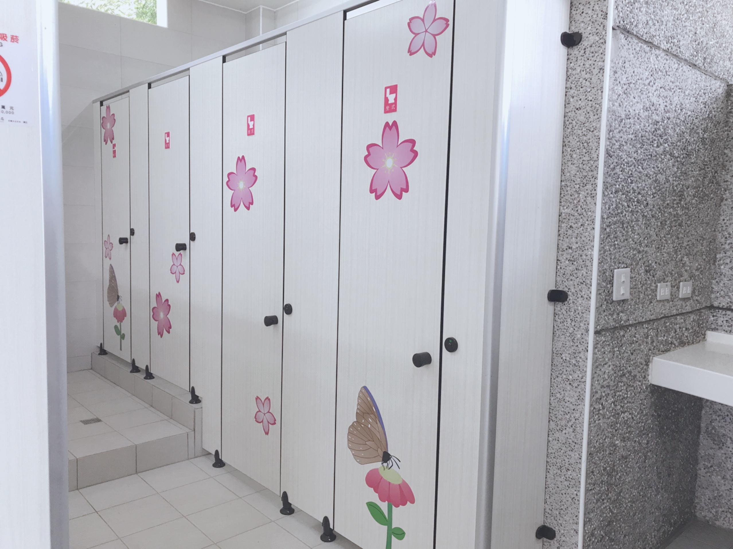煥然一新!揮別老舊陰暗環境,台中市太平區921震災紀念公園、豐原區慈濟公園及新社區環保公園3處公廁修繕完工,明亮又通風,廁間門板設計更結合在地特色,包含太平荔枝、枇杷、竹筍,豐原葫蘆墩意象,以及新社櫻花、香菇,提供清新舒適的如廁空間。