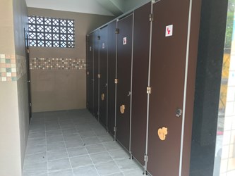 台中市政府環保局今年與太平、豐原及新社區公所,共同爭取環保署補助經費,改善老舊陰暗的廁間環境。環保局說明,此次修繕工程提升坐式馬桶比例,並增設急救鈴、掛勾、置物板及扶手等友善設施,同時將部分洗手檯調整為兒童使用高度,整體空間更明亮、安全及便利。