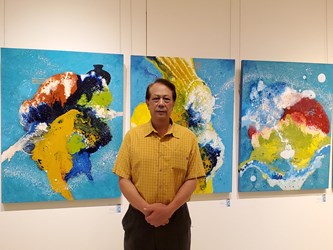 公職退休後潛心藝術創作的林輝堂,自即日起至12月9日在大墩文化中心大墩藝廊(一),舉辦「曜變‧躍變-林輝堂西畫創作邀請展」,將展出「畫布上的天目」宇宙系列65件西畫作品,帶領欣賞畫作者穿梭東方哲思、西方媒材,徜徉星際銀河和浩瀚宇宙,體驗饒富東方美學內涵的精采作品。