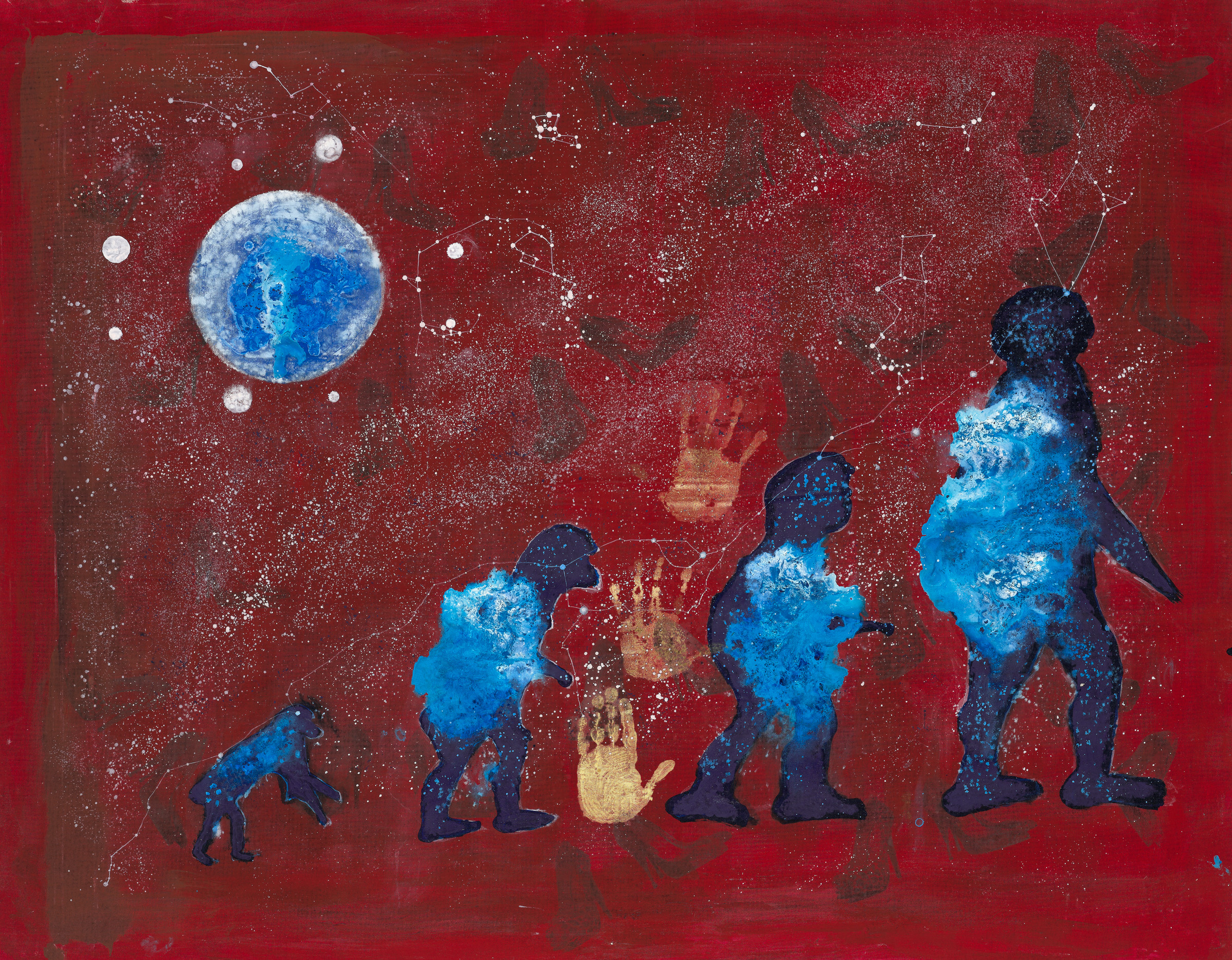 此外,〈阿凡達-外星人〉圖面上的阿凡達,有創作者的想像和觀賞者的自我認知;〈星象系列〉在八卦五行的圖面上,均依星象方位組合呈現。展出的內容,不論是表現時間的移動(晝與夜)、空間的運用(浩瀚宇宙)、先人的智慧(易經)、現代的科技(阿凡達)等,都傳達出人類科技和浩瀚宇宙息息相關以及不可分割的命運。