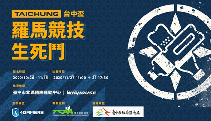運動局說明,民眾可透過4Gamers的Twitch頻道:「WirHouse會場」https://www.twitch.tv/wirforce ;「殘酷舞台」https://www.twitch.tv/4gamers_idol 觀看「台中盃羅馬競技生死鬥」賽事直播。(11/24*18)*運動局