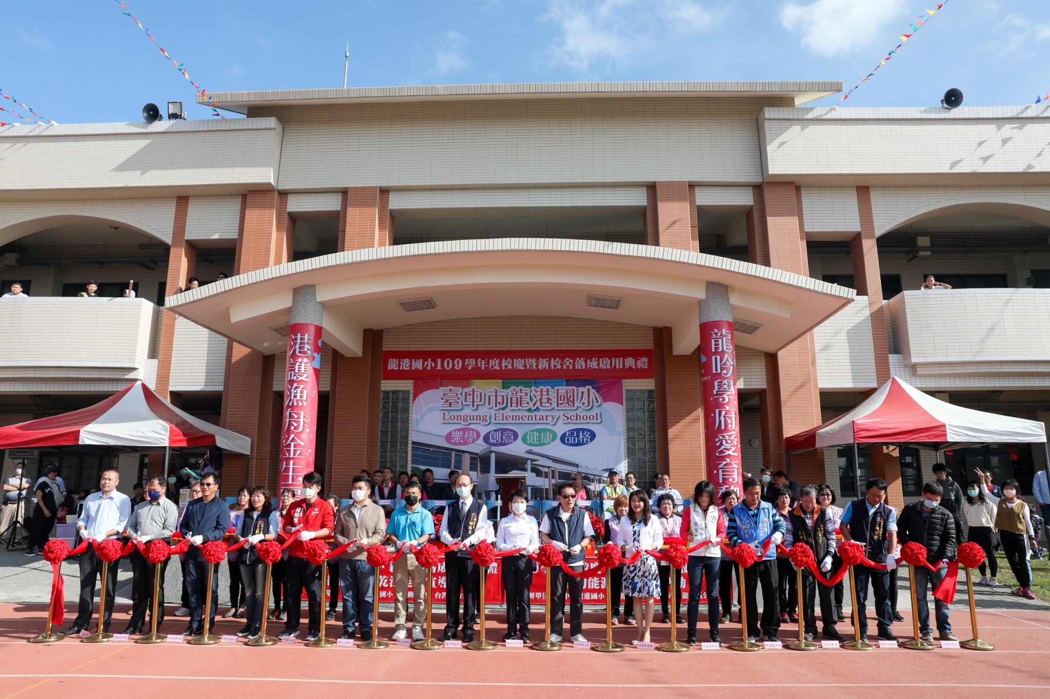 台中市龍井區龍港國小原A、C棟校舍環境設施老舊,耐震能力不足,為讓學生安心學習,台中市政府教育局在中央補助下拆除重建,共斥資5,892萬8,500元,今(28)日落成啟用。市長盧秀燕感謝中央、地方民代共同支持重建預算,讓龍港國小成為幸福的學校,也讓孩子安心、開心學習。