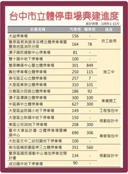 交通局也說,潭子區「潭興立體停車場」預計於今年12月開工;中區「興中立體停車場」及大里區「益民國小地下停車場」等2案主體工程發包中,其餘尚有5場規劃設計中、2場專案管理發包中,預計立體停車場共可新增4,604席汽車格與2,808席機車格,讓用路人停車更方便。