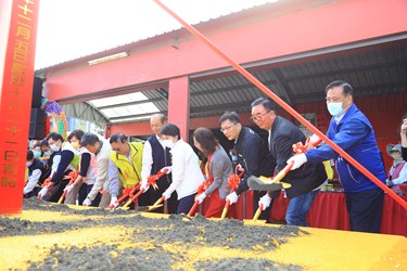 今日活動,盧市長、民政局長吳世瑋、都發局長黃文彬、住宅發展工程處副處長陳煒壬、立委張廖萬堅、市議員楊正中、黃馨慧、林祈烽、陳淑華出席,大方廣人文美學協會理事長林慧芬、戴育澤建築師、黃志瑞建築師、麗明營造董事長吳春山、西屯區長陳寶雲、大河里長陳資源、大河里福德祠主委劉坤湧、成大創意基地執行長劉舜仁、皓宇工程顧問公司董事長汪荷清、水牛建築師事務所建築師陳永興也到場一同為工程祈福,市議員張廖乃綸也派代表參與。(12/5*10)*民政局