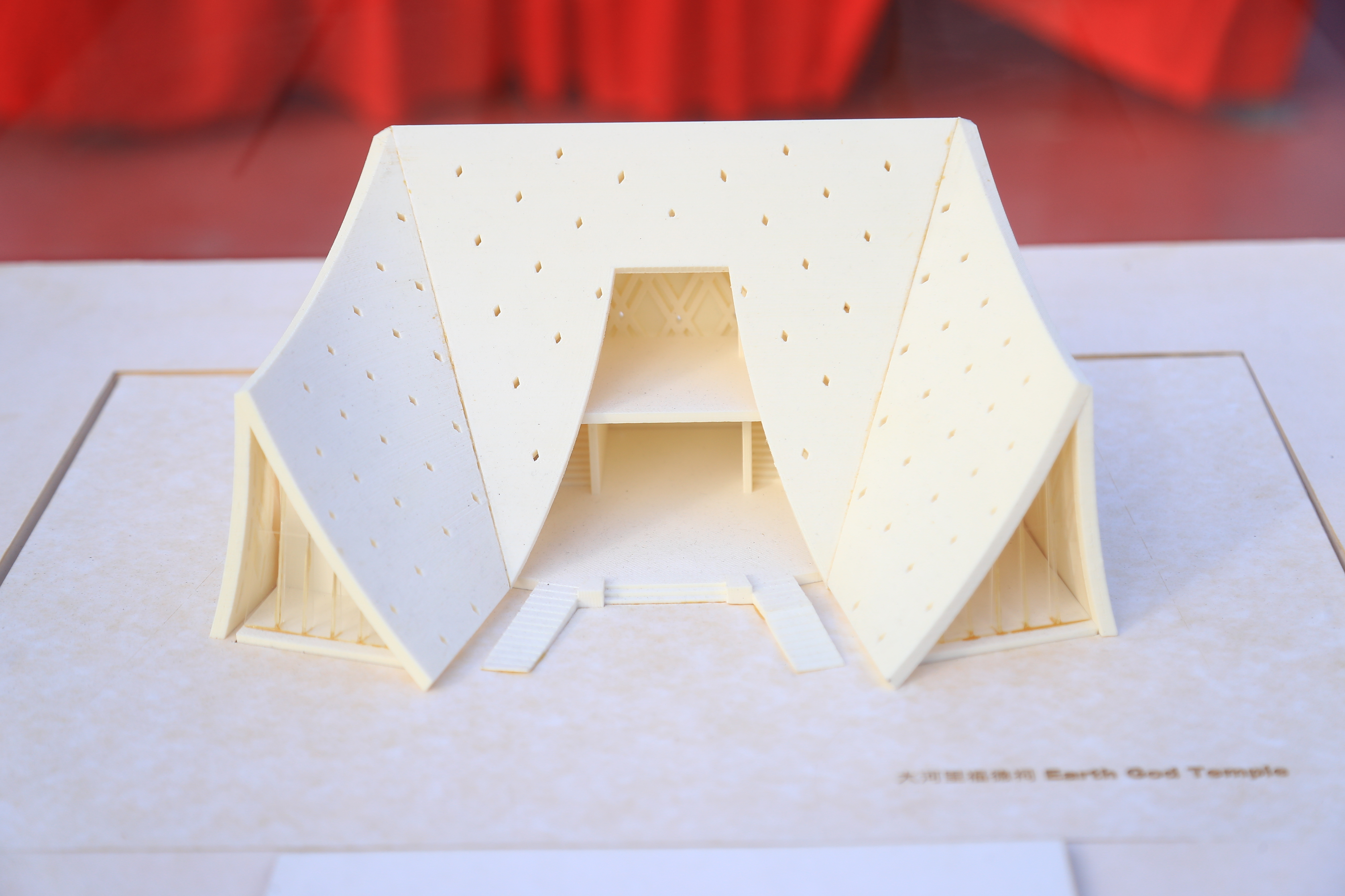 盧市長表示,大河里福德祠是全國唯一國際競圖的土地公廟,吸引來自9個國家、307件的作品參加,最後由日本大阪市立大學學生芥隆之介Akuta與黃志瑞建築師團隊合作設計的作品脫穎而出,感謝大河里長陳資源、大河里福德祠主委劉坤湧,以及大方廣人文美學協會、戴育澤建築師等單位自掏腰包辦理國際競圖相關工作。