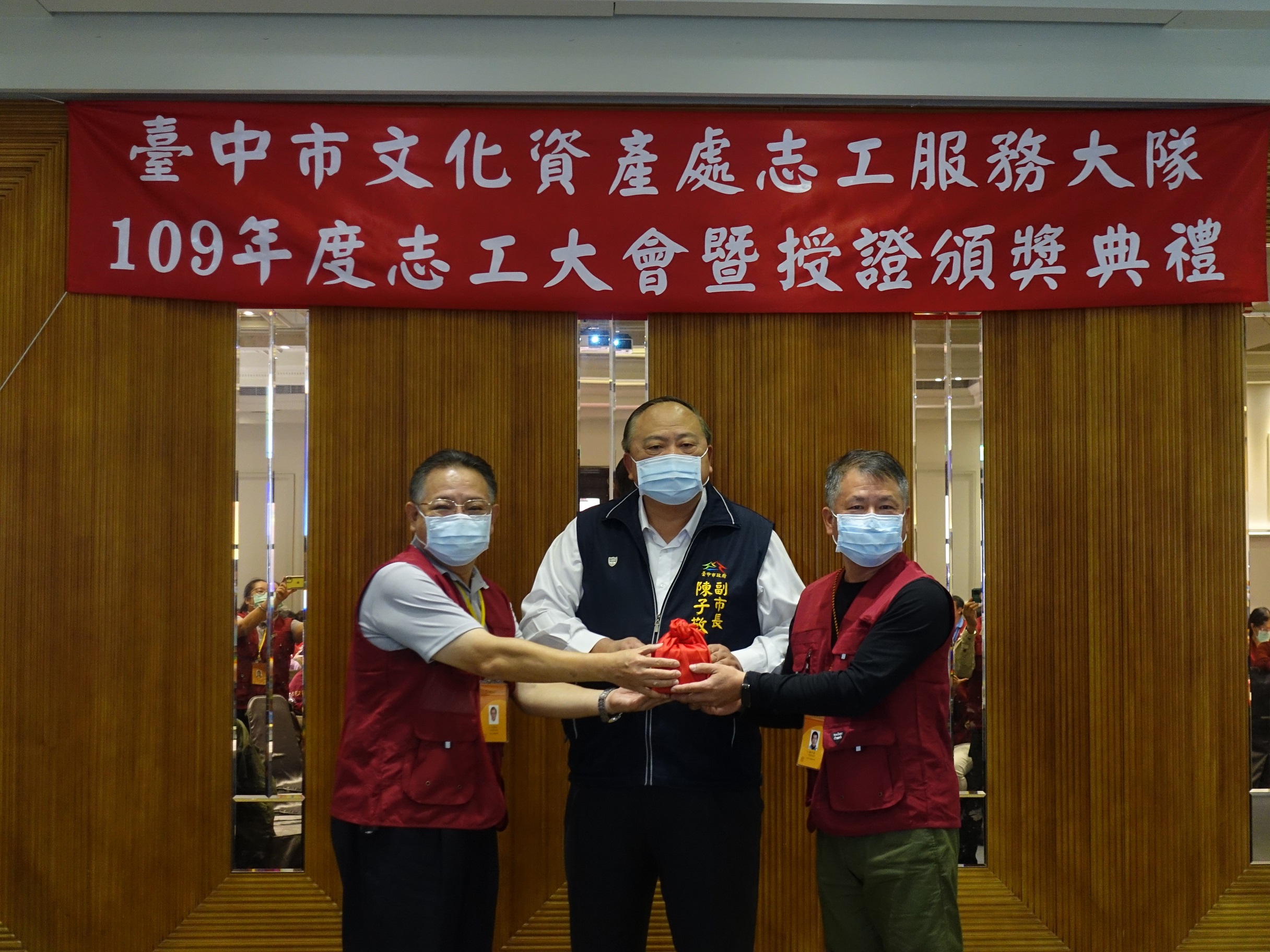 今日活動,陳副市長、文化局長張大春前來勉勵,台中市議員林碧秀、李天生、王立任均出席,市議員蘇柏興也派代表到場感謝志工們付出。(12/5*10)*文化資產處