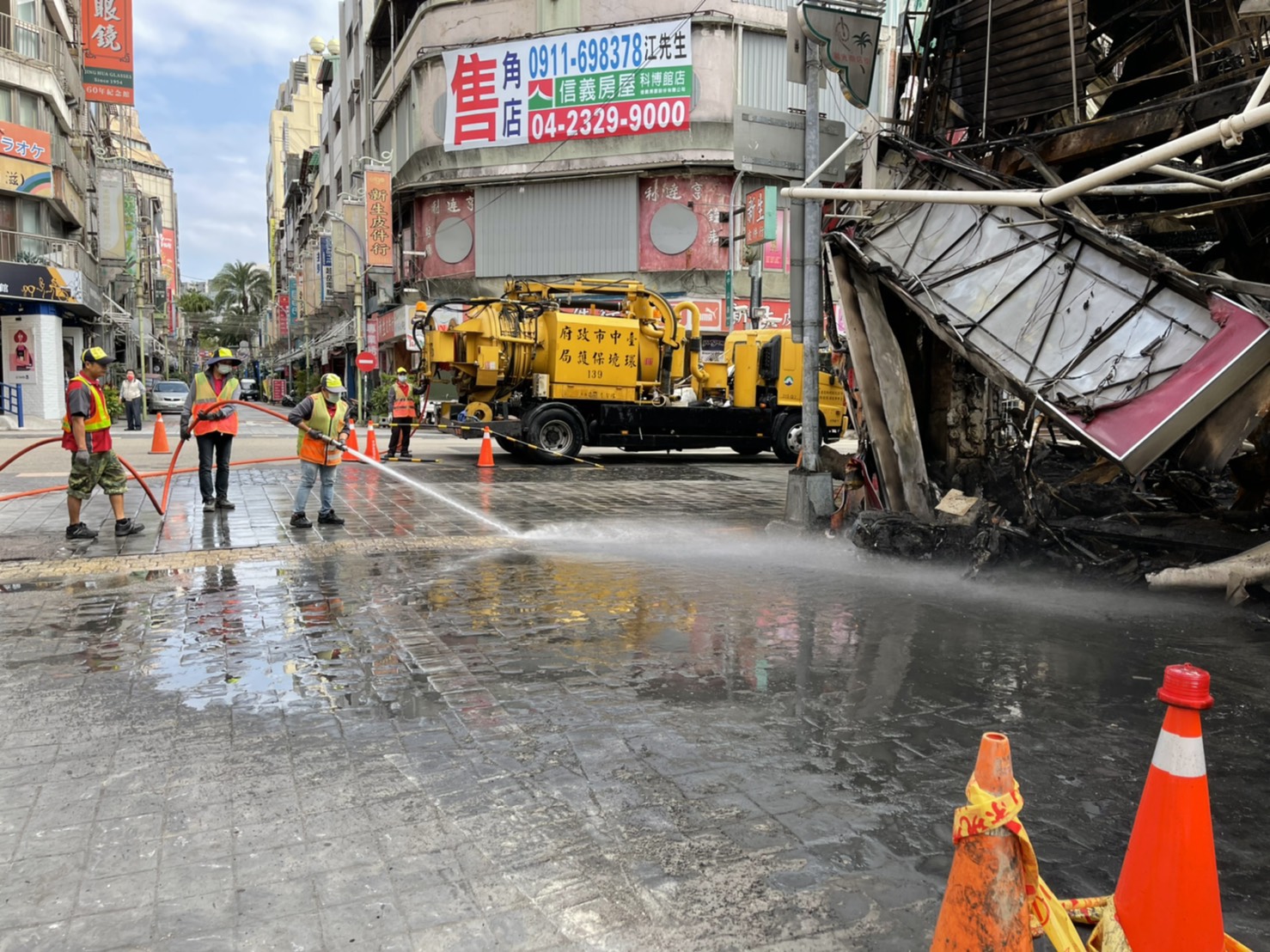 環保局說明,為加速清除廢棄物,環保局調度中西區隊抓斗車及資源回收車、南屯區隊支援小山貓及東南區隊支援運土卡車,歷時4小時清除完成21.85公噸火災廢棄物及0.65公噸資源回收物,次日則調度灑水車清洗街道上的塵土及灰燼,完成周圍整體清潔。
