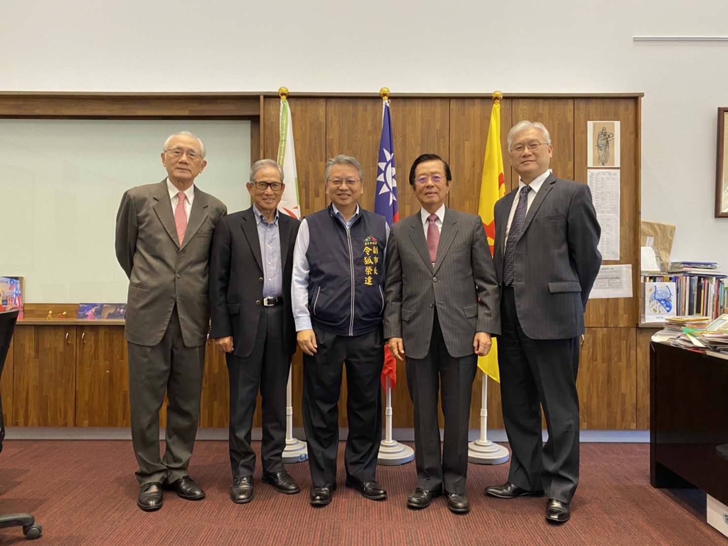 另外群健有線公司顧問余宗艺、車王電子董事長蔡裕慶、中國醫藥大學暨醫療體系董事長蔡長海、台灣大方廣人文美學協會理事長林慧芬,以及台中市勤益科技大學、亞洲大學、台灣體育運動大學、朝陽科技大學等大專院校代表也出席提供專業意見,同心協力推展台中城市外交及國際交流。