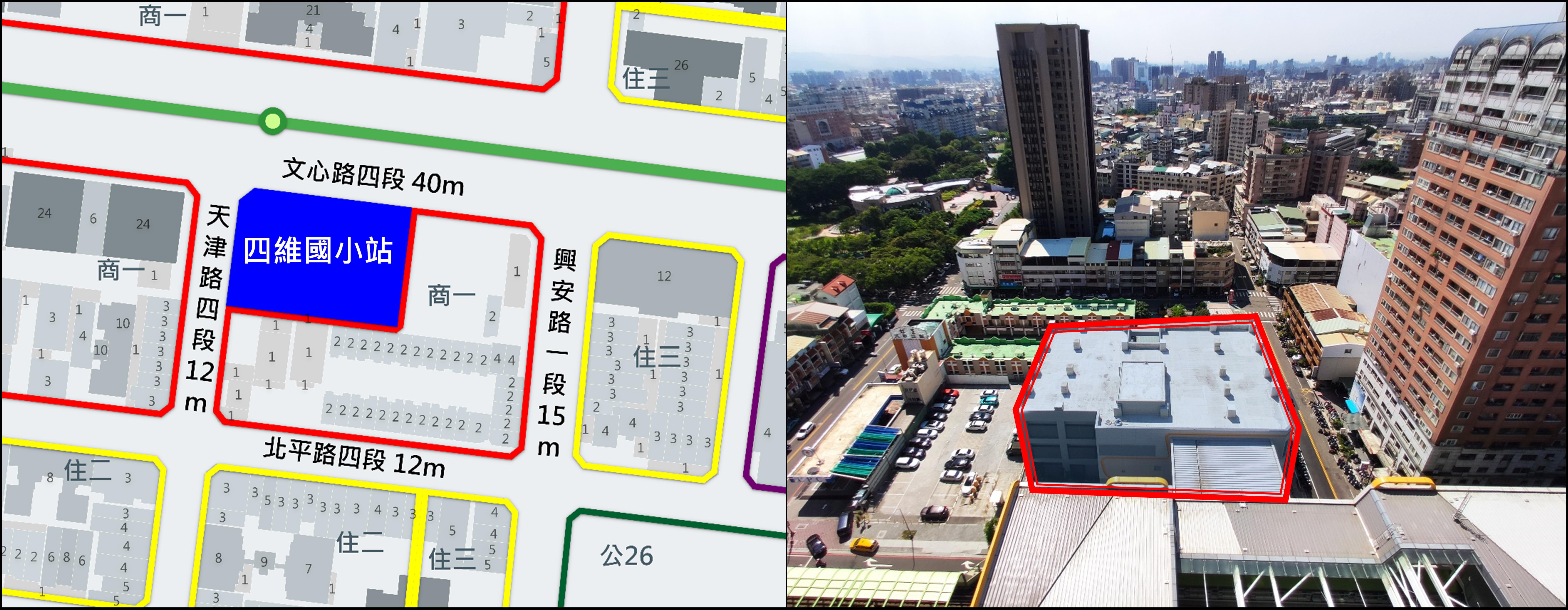 台中市政府交通局長葉昭甫表示,捷運綠線四維國小站開發基地總面積為591坪,坐落於北屯區文心路與天津路四段交會處,鄰近台鐵太原站、四維國小與北屯兒童公園,加上周邊有興安路、昌平路商圈及一點利黃昏市場等,生活機能極佳,預估完工後銷售總額可達21億元。