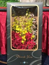 中華文心蘭產銷發展協會表示,今年6月在台灣醫院協會協助下,成功將1000盒花卉禮盒送到全台53家防疫重症醫院,包含離島澎湖、金門、馬祖等地,除將愛心傳遞至醫療人員手中,也推動線上B2B花卉禮盒物流,讓花卉產業以伴手禮方式闖出新路。