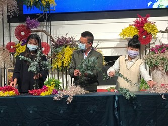 今年新冠肺炎影響全球產業,行政院農業委員會推動一系列花卉紓困活動,持續培養國人用花美學與習慣。中華文心蘭產銷發展協會今(10)日邀請全國花藝技能競賽國際裁判長周英戀,與賽事第45、46屆的金牌國手柳皓淳、張可銘示範製作花禮盒,並推廣線上下單、產地配送的新型態花卉伴手禮,重塑國人花卉贈禮與生活裝飾觀念。
