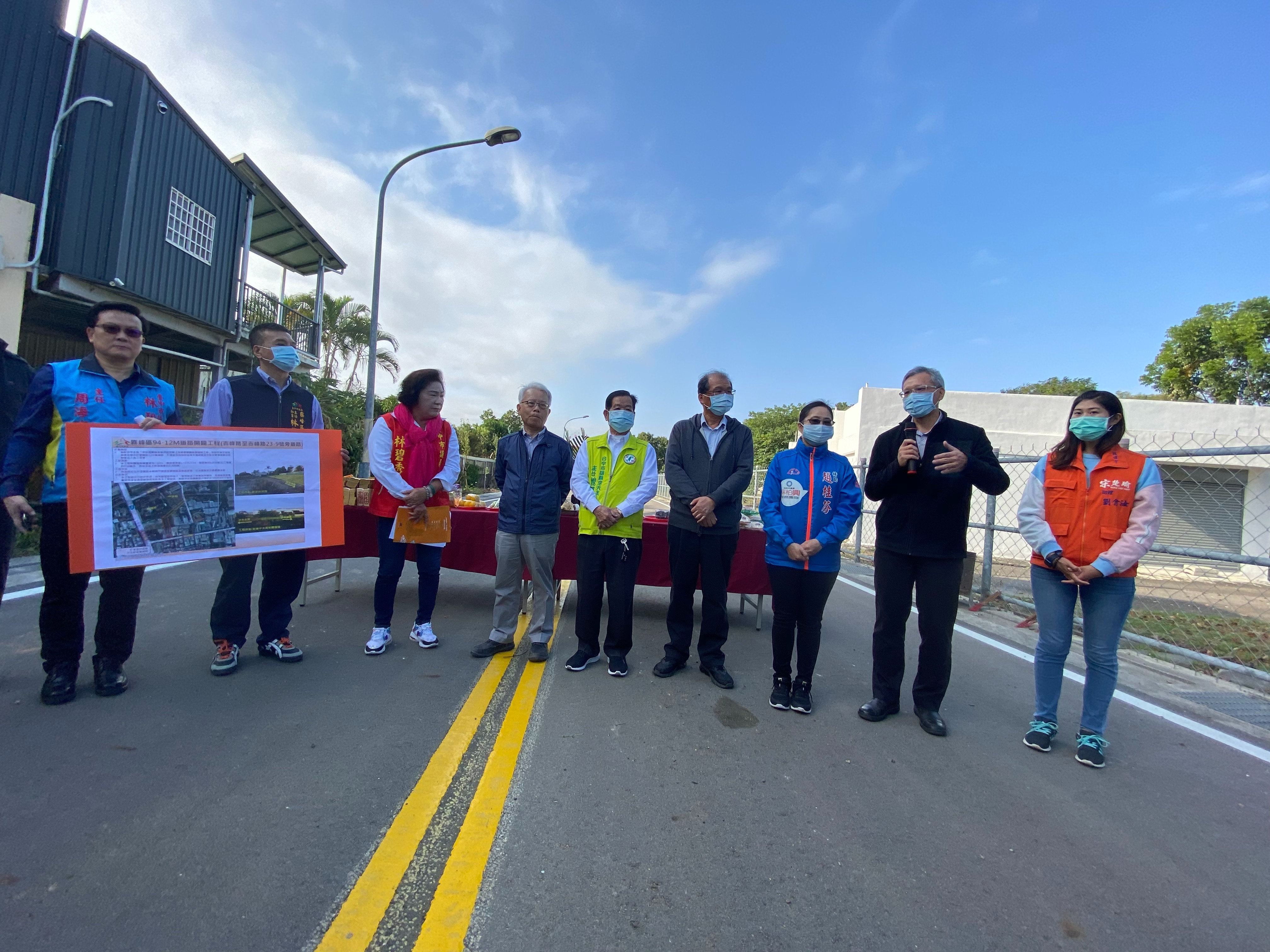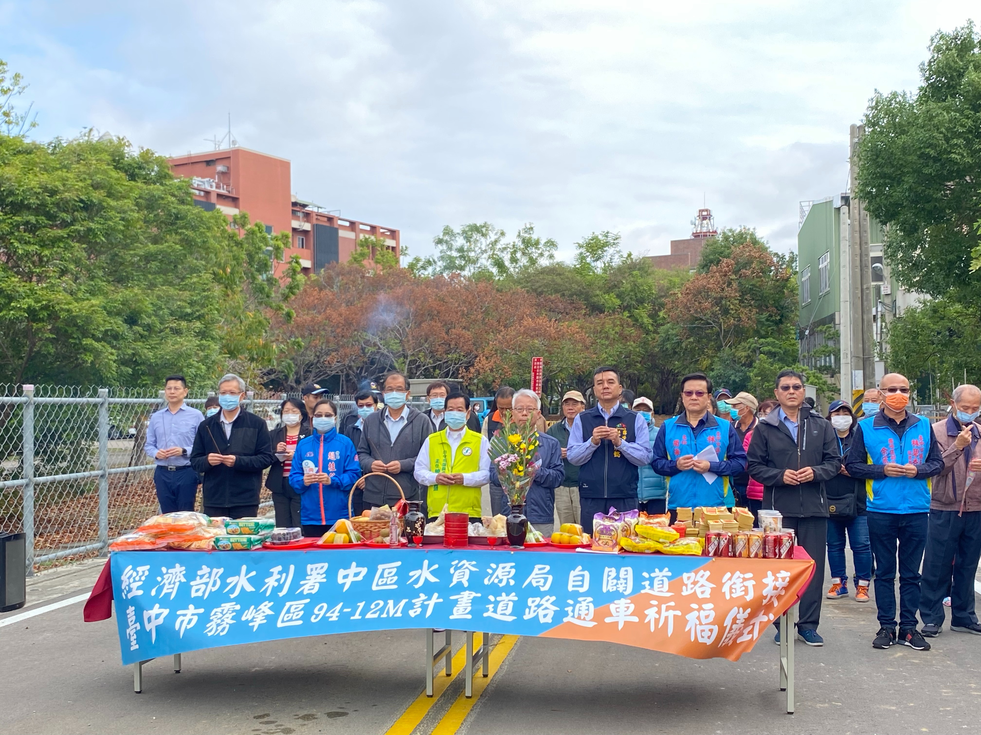 霧峰區94-12M道路開闢工程長度約130公尺、寬12公尺,總工程經費約6,900萬元,昨日通車儀式,市府建設局主任秘書陳聰仁、中區水資源局長陳弘凷、經濟部水利署水利規劃試驗所長陳春宏、台中市議員林碧秀出席,市議員張滄沂、李天生、林德宇、段緯宇、蘇柏興皆派員參與。(12/16*10)*建設局