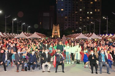 今日點燈儀式,黃副市長帶領市府團隊與台中市眾教會牧師、神父、地方民意代表們共同觸碰星型燈飾,正式點亮活動主樹「伯利恆之星」,府前廣場周邊燈廊燈飾也將在倒數聲中同步綻放光芒,帶給市民最美的祝福。