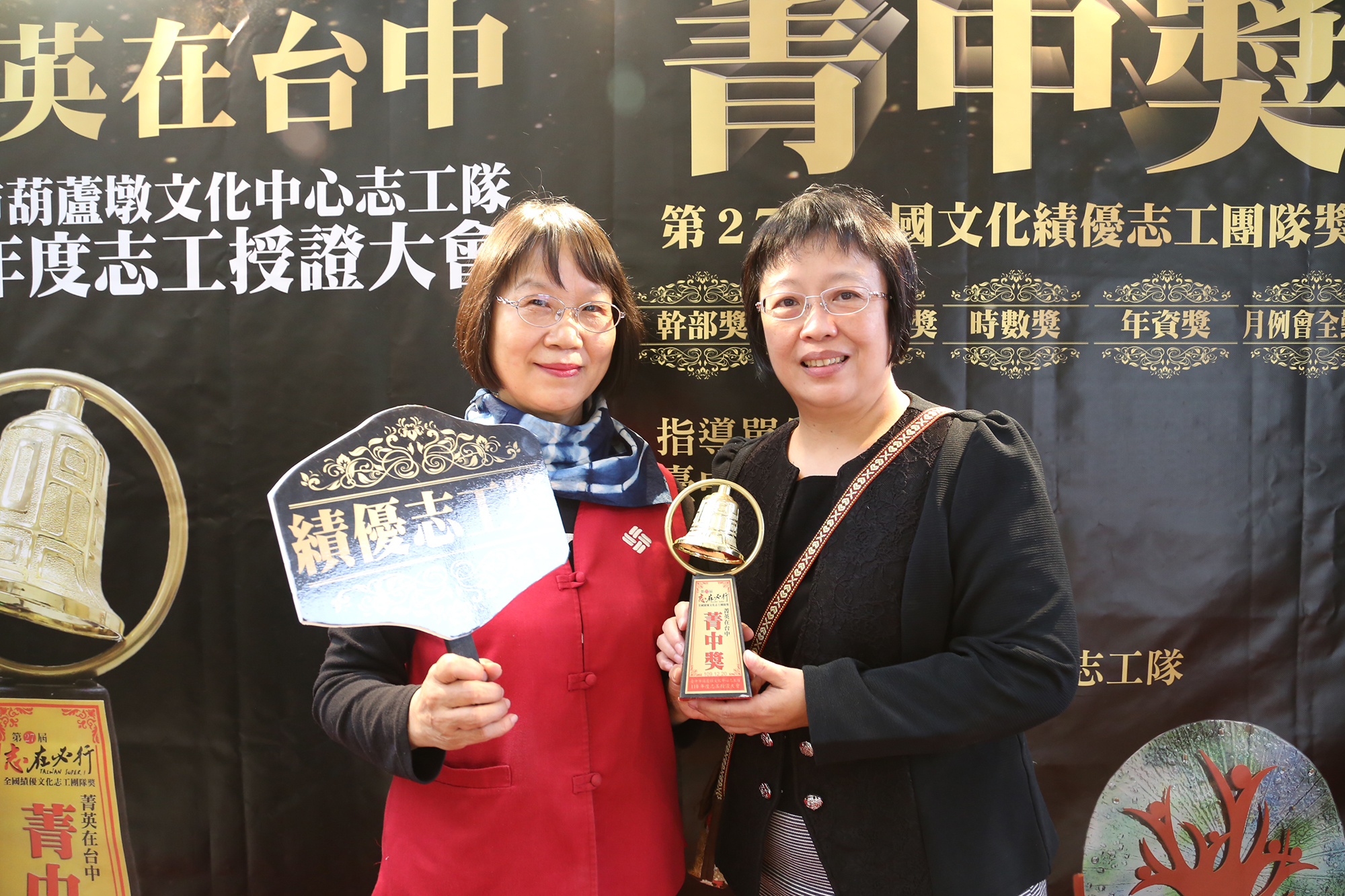 文化局表示,館內志工團隊成立33年,隊中有226位成員,超過半數隊員服務年資超過10年,並有多位已有2、30年資歷,還有兩組三姐妹檔共同參與的志工家庭;而團隊曾於90、102獲「文化部團隊獎」,今年再次從上千團隊中脫穎而出,得到最高殊榮,成為全國少數擁有三次獲獎紀錄的團隊;此外,隊上志工鄭芬宜今年也榮獲衛福部三等獎章及文化部銅質獎肯定。