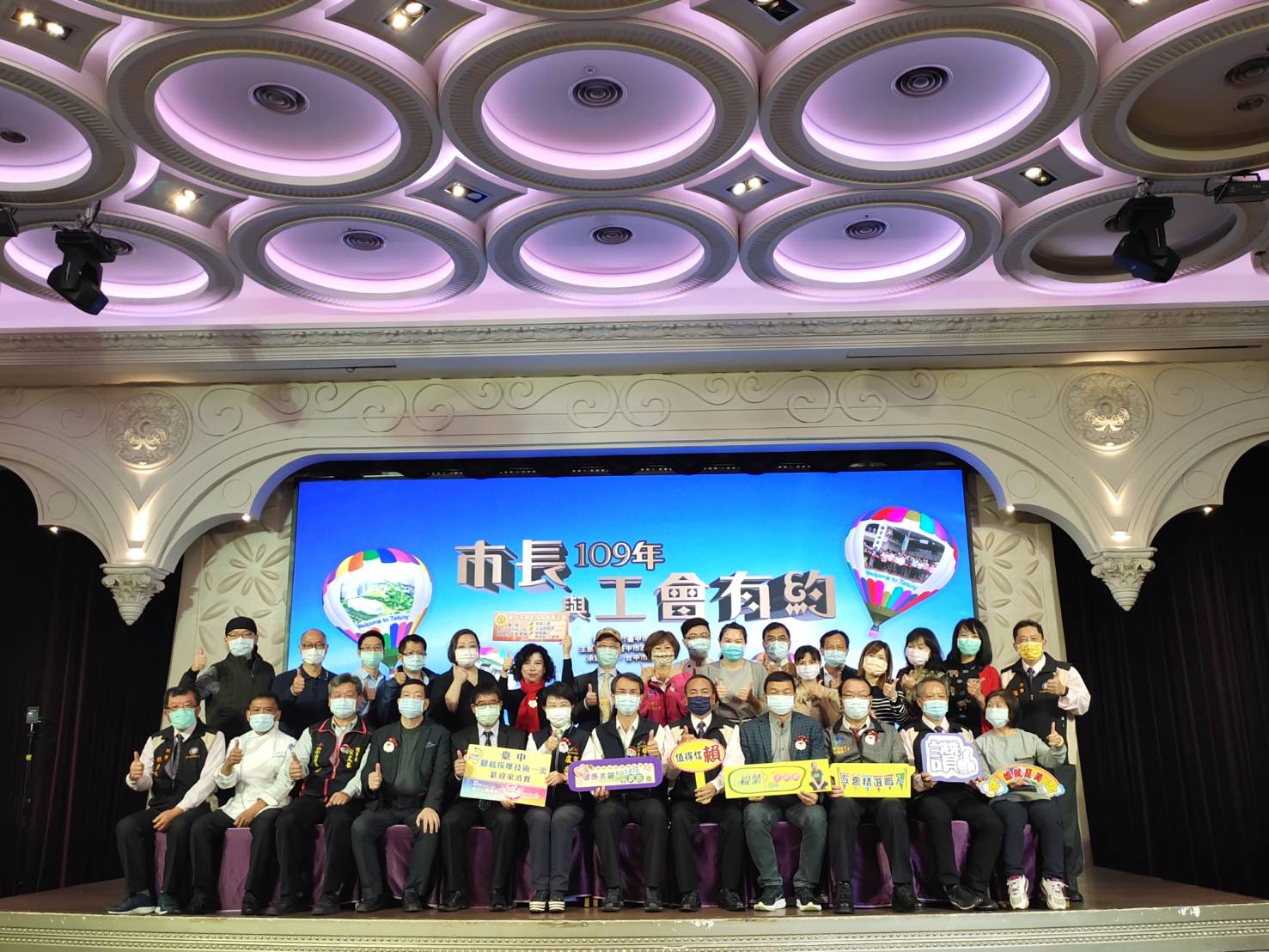 傾聽勞工心聲,台中市政府勞工局昨(21)日在潮港城國際美食館舉辦市長與工會有約活動,市長盧秀燕出席與台中市6大總工會代表近250人面對面座談,她表示,工會是市府好夥伴,將持續攜手合作,做勞工朋友最堅強後盾。
