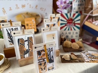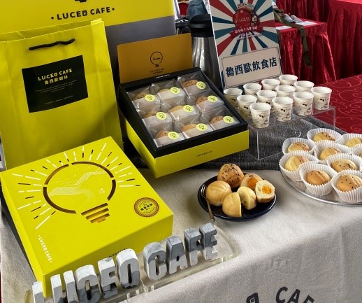 另外,青年店家「魯西歐咖啡」主要販售磅蛋糕、瑪德蓮等自家手作甜點,青創者鄭伊珊研發的特色冰沙及手沖咖啡都是回購率超高的飲品,更有不少網友訂購禮盒,作為年節送禮或是彌月贈禮;該店家去年度參加台中市十大伴手禮曾以「昉咖啡濾掛包禮盒」入選前50名,今年度再以「金吉栗瑪德蓮禮盒」入選前50名,蟬連兩年獲得好禮標章。此次參賽包裝設計以「永遠為你留一盞燈,用味覺傳承幸福記憶」為主軸,展現對食材的堅持及對風味的掌握。