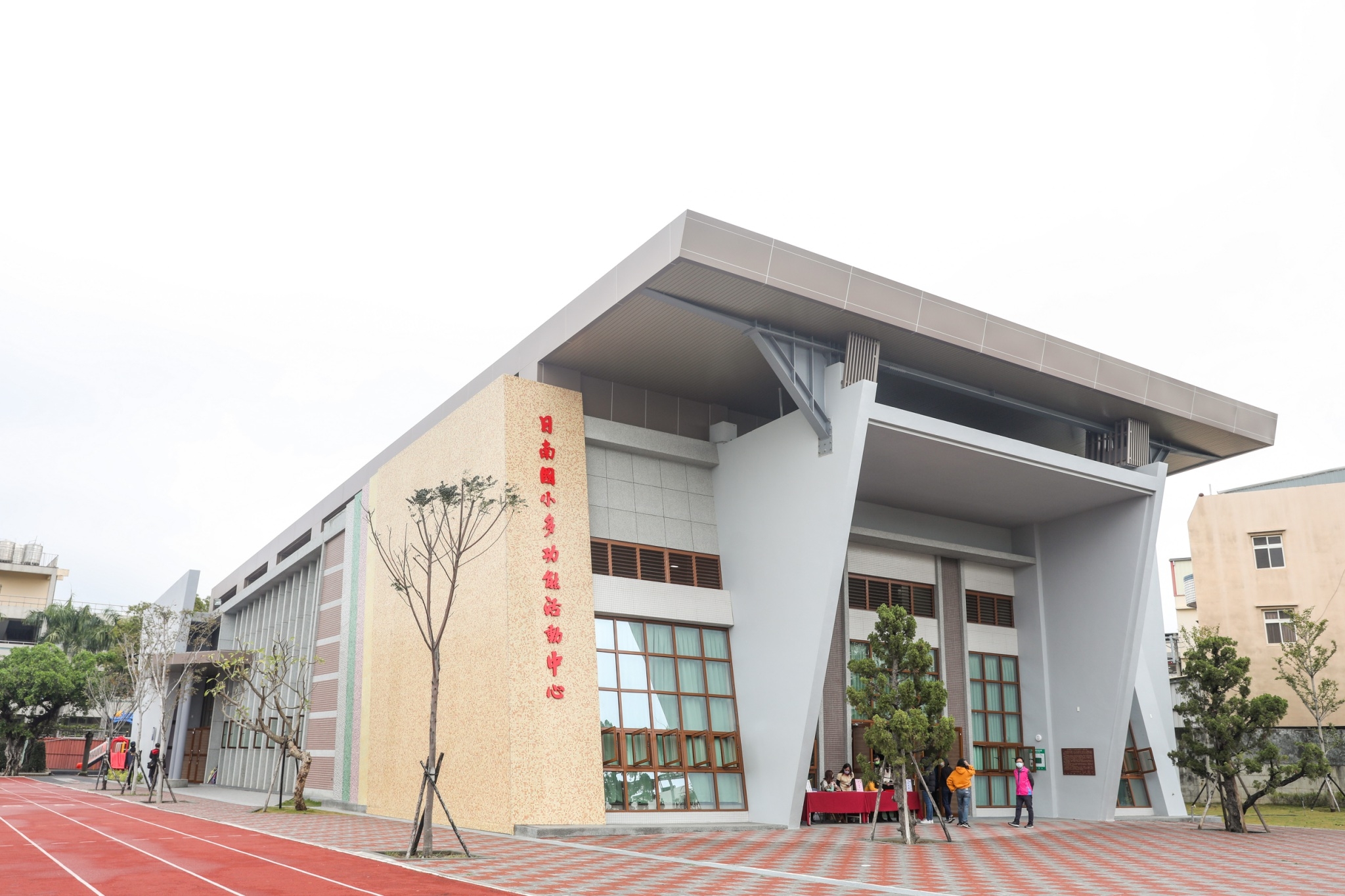日南國小校長林銘宗表示,感謝盧市長重視學校發展,感謝立法院副院長蔡其昌與多位市議員大力支持學校建設;新建活動中心外型像一艘船,期勉學子勇敢出航,建物側邊採書頁造型設計,期盼小朋友終身以書為友,也歡迎鄰近居民前往使用,符合多功能活動中心的目標。