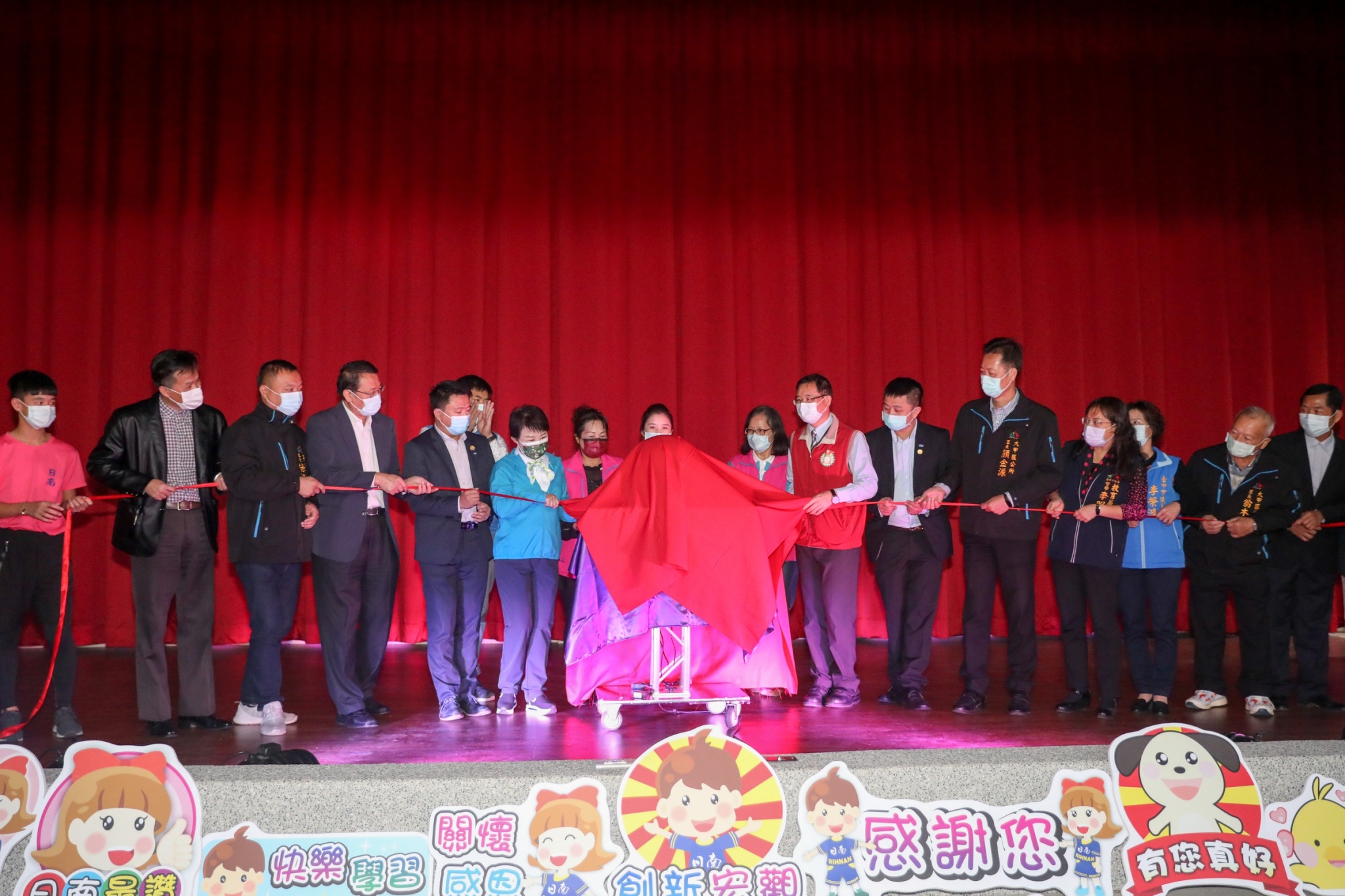 日南國小多功能活動中心落成啟用典禮,包括盧市長、教育局副局長方炳坤、大甲區長顏金源,以及台中市議員李榮鴻、吳敏濟、施志昌、立法院副院長蔡其昌辦公室特助周鈺騏、日南國小校長林銘宗等人一同見證。(12/24*6)*教育局