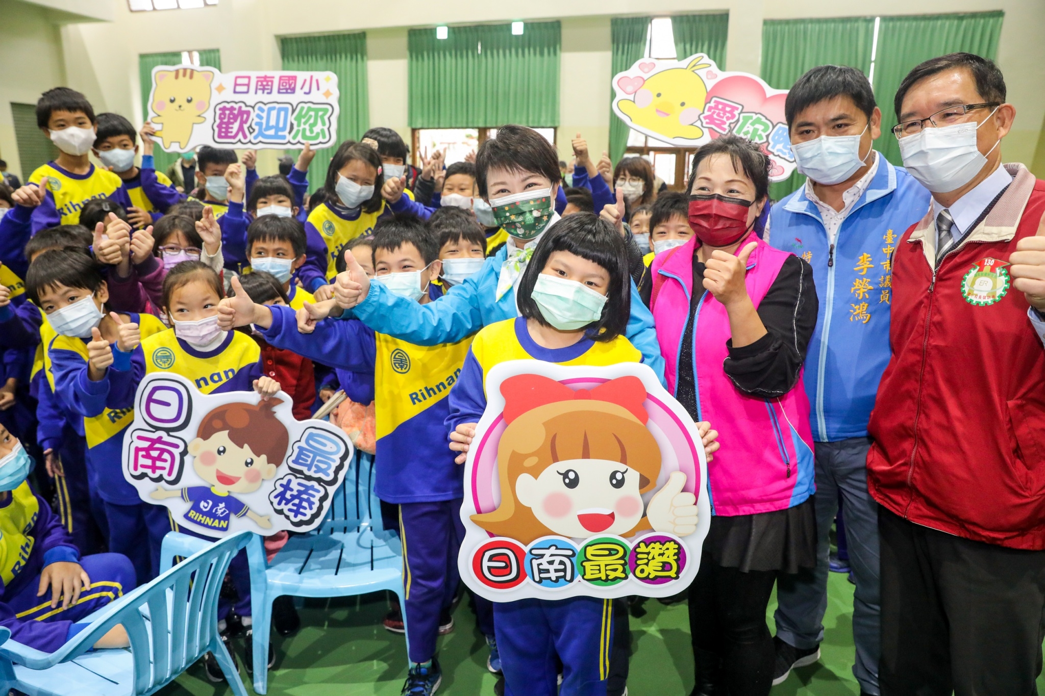 「美夢成真!」盧市長表示,感謝立法院副院長蔡其昌在中央爭取經費補助、台中市議員李榮鴻、吳敏濟、施志昌等人支持預算、補足預算,讓日南國小每班都能安裝冷氣,預計月底全數安裝完畢,加上市府加碼補助裝設禮堂冷氣,讓這所跟中華民國同壽的日南國小設備持續提升。