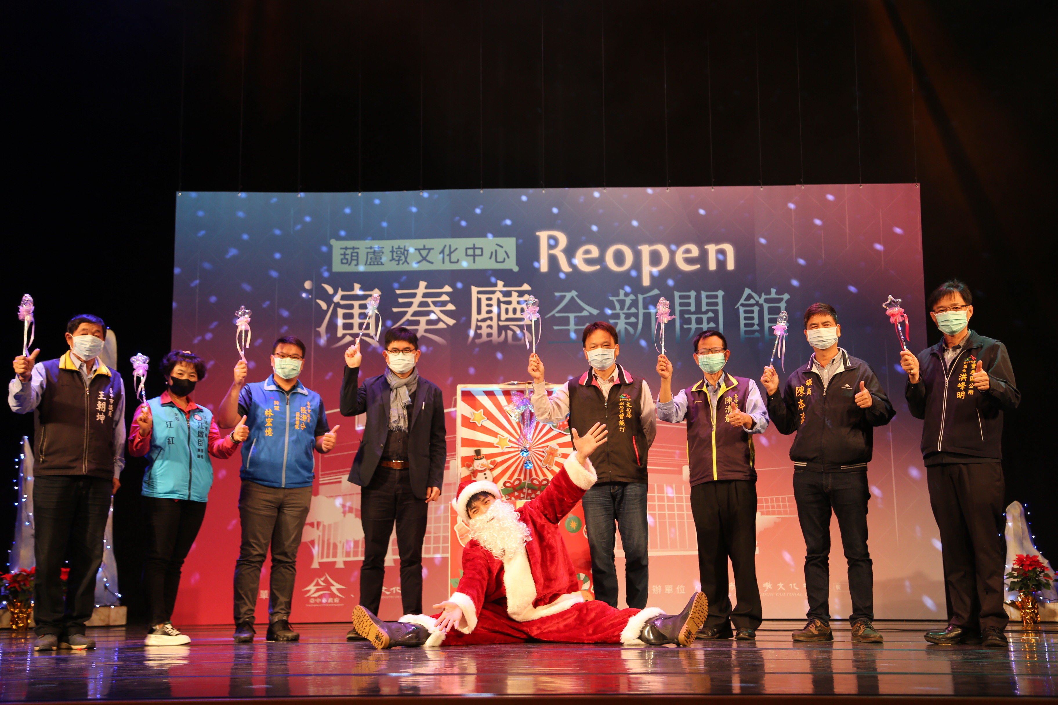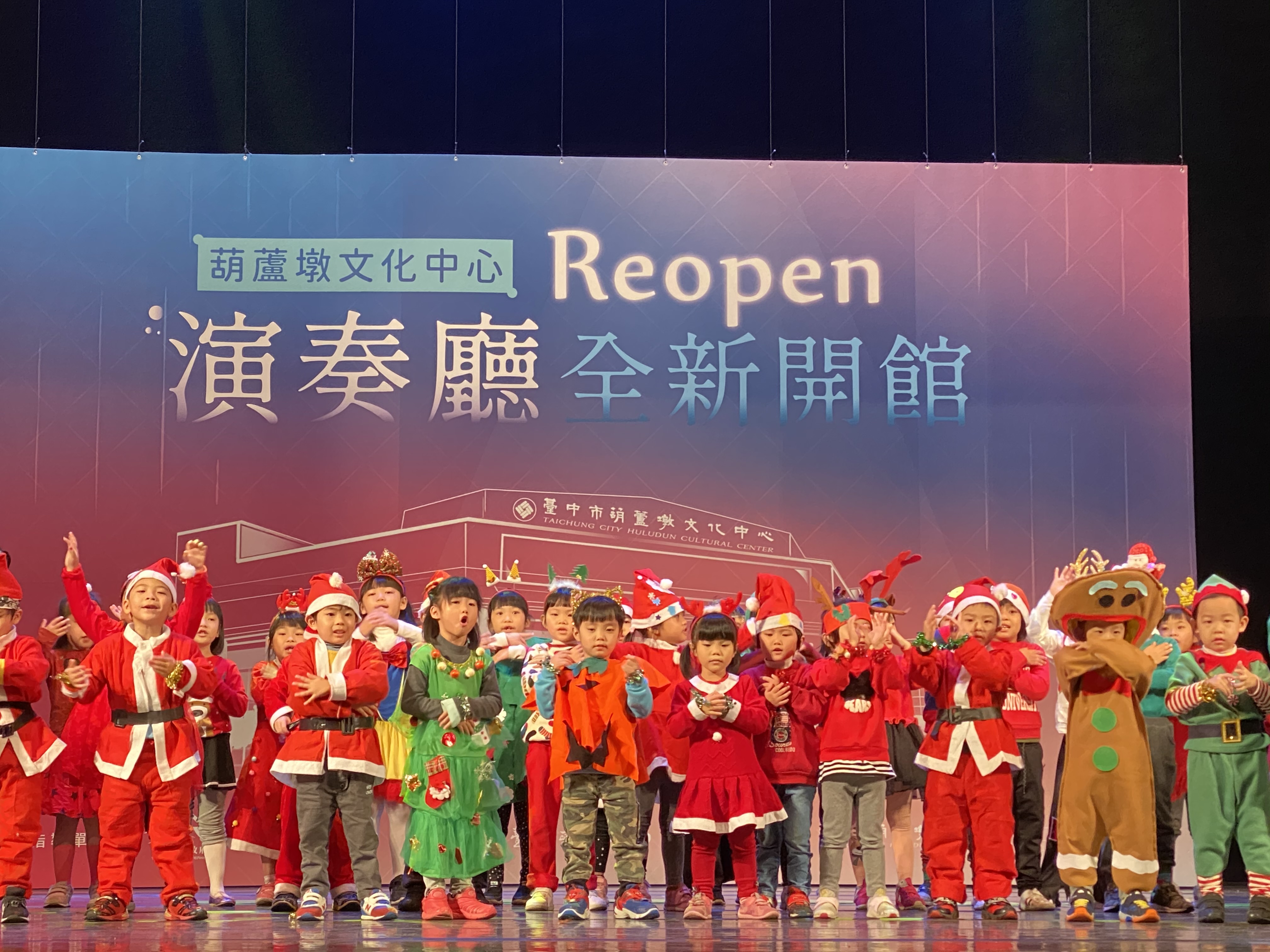 今日開館儀式適逢聖誕節前夕,演奏廳打造佳節氛圍,與會貴賓打開禮物盒,升起炫麗燈光彩球,象徵獻給台中市民的聖誕禮物,現場並安排豐原幼兒園演唱聖誕歌曲。另外,傑出演藝團隊瓊瑢舞蹈團,現場帶來舞動葫蘆墩圳開發傳奇舞劇中精華片段。包括市議員陳本添、陳清龍、王朝坤及豐原區長洪鋒明等人均到場祝賀。(12/24*18)*文化局